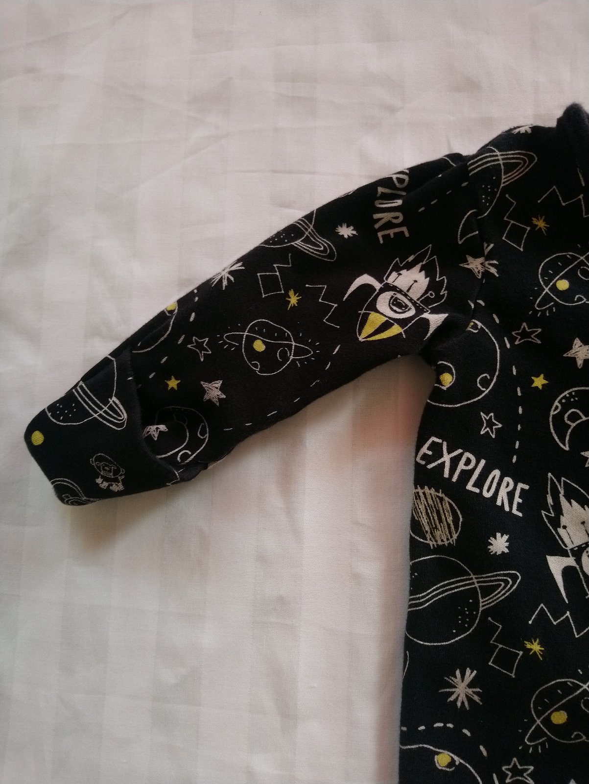 2 ks čiernych overalov so vzorom, so zakrývaním ručičiek,