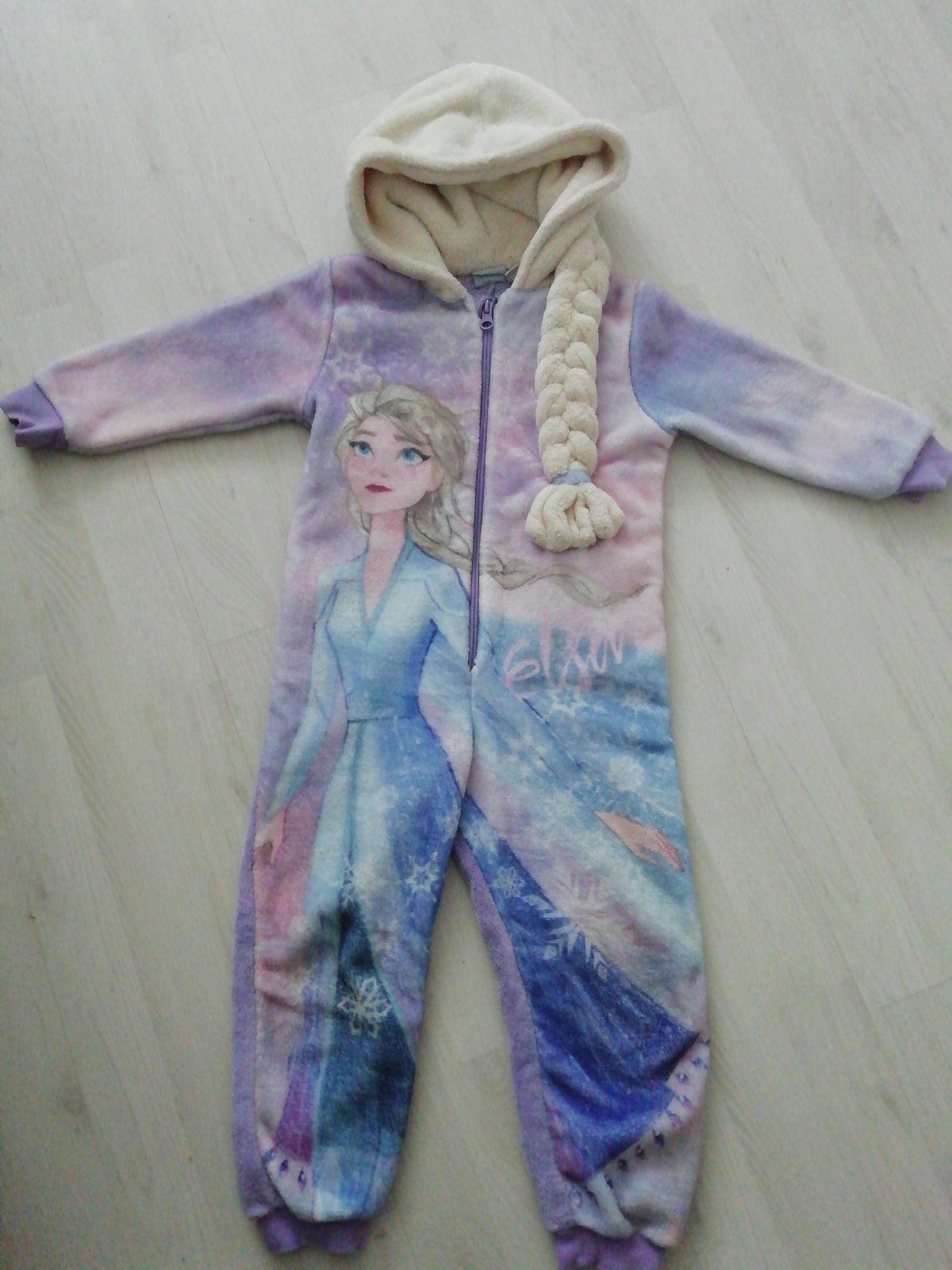 Predám plyšový overal veľkosť 98/104 uvedené 3-4roky.bez závad. Overal Frozzen princezná.My sme používali ako pyžamu, ale podľa mňa sa to dá nosiť aj na bežné nosenie.