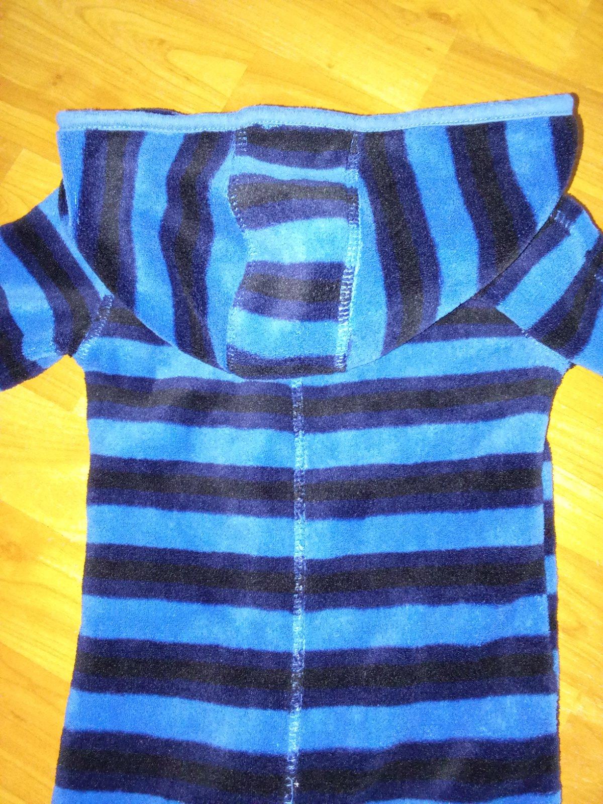 Na 6/12 mesiacov 74/80 veľmi pekný teplucky .Zips v poriadku.Rukav sa dá otočiť vznikne rukavicka a tak ísť na nožičkách sa dá otočiť vznikne ponožka vid foto.