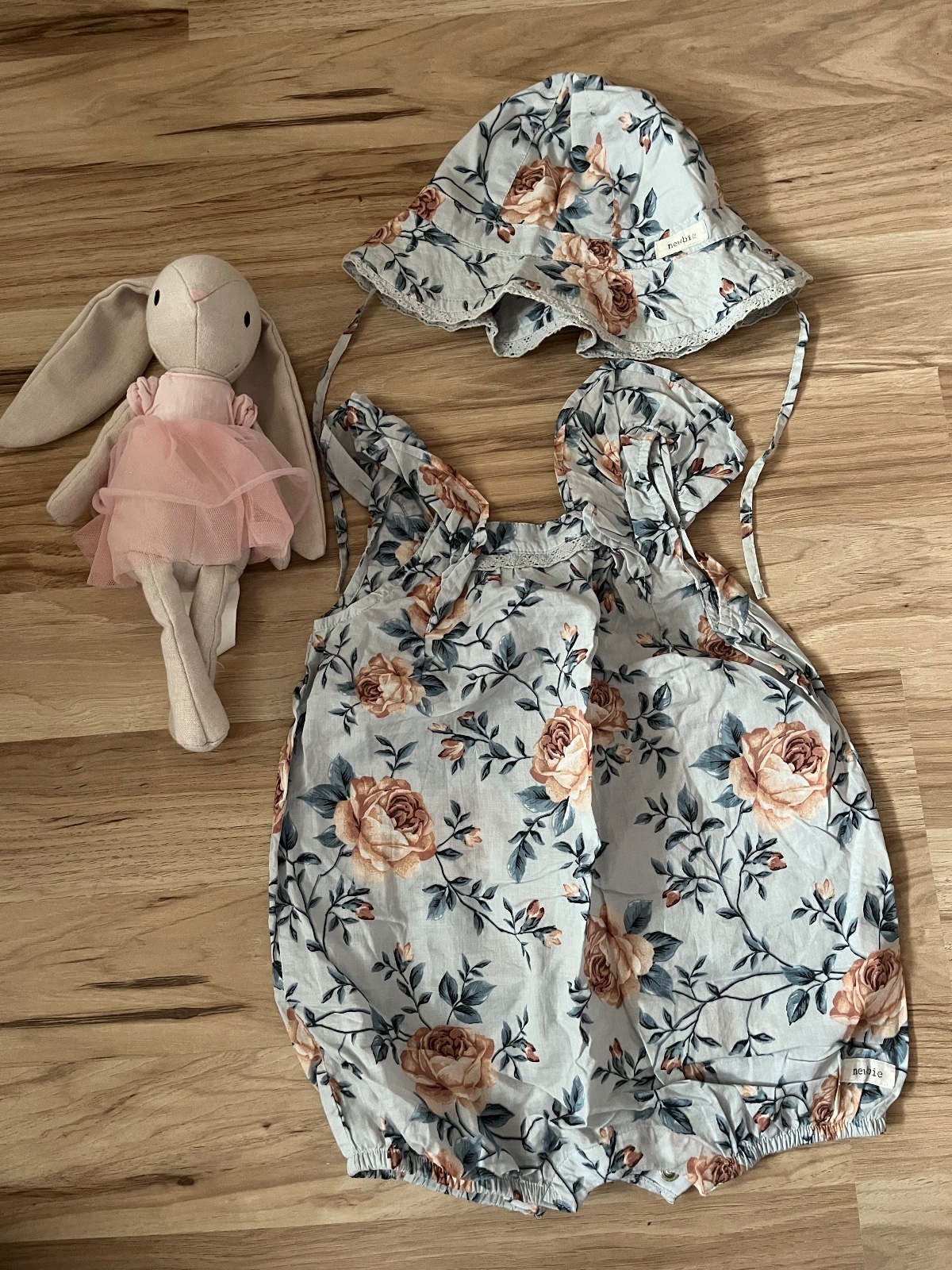 Značka: Newbie Stav: nosený veľmi málo, bez poškodení Materiál: 100% bavlna Veľkosť: na 12 až 18 mesiacov, nositeľný dlhšie Dĺžka: 46/48 cm Šírka: 27 cm Farba: marhulová