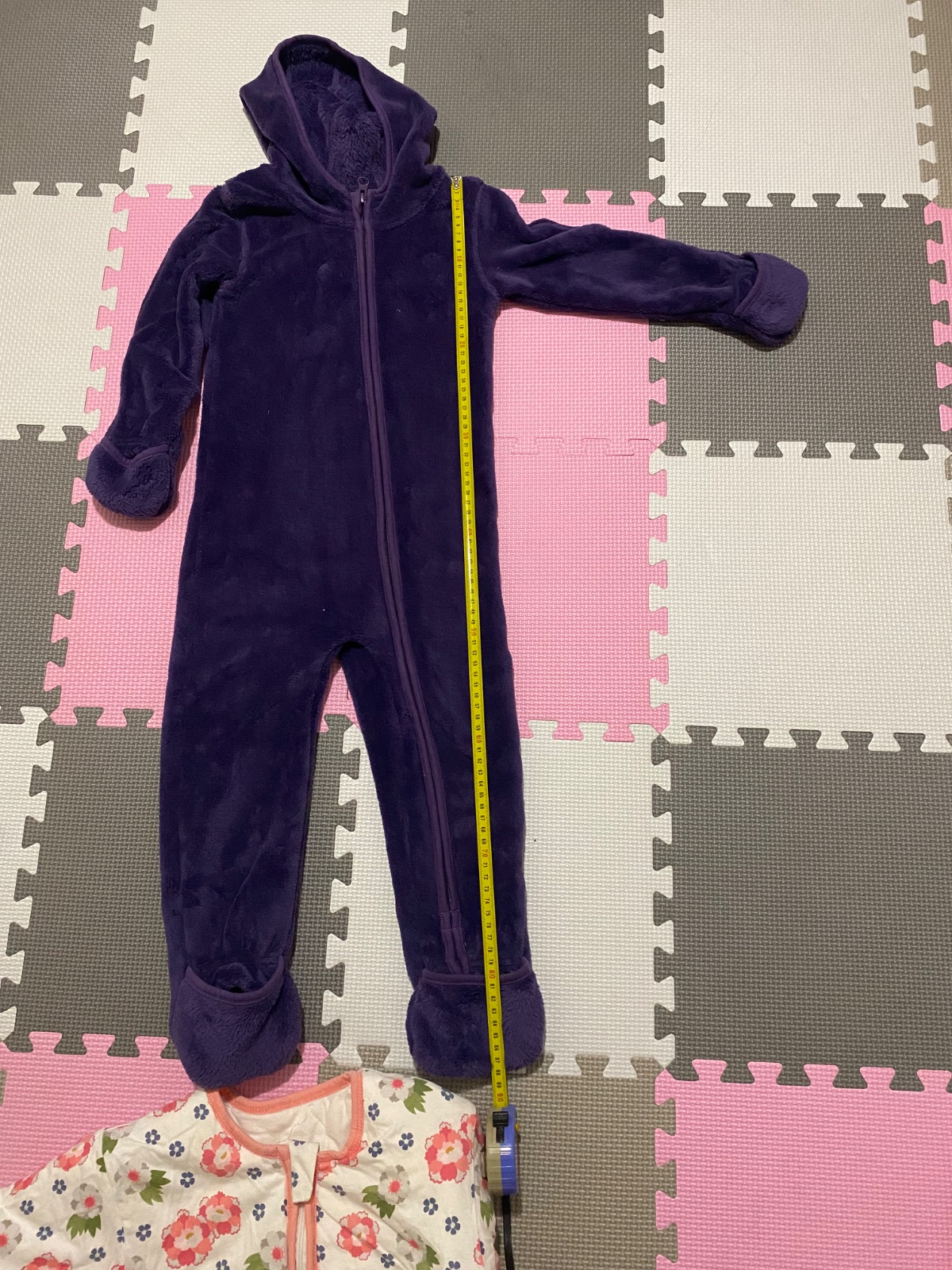 Top stav, konce rukávov a nohavíc sa dajú prekryť a zakryjú sa tak ručičky i chodidlá.