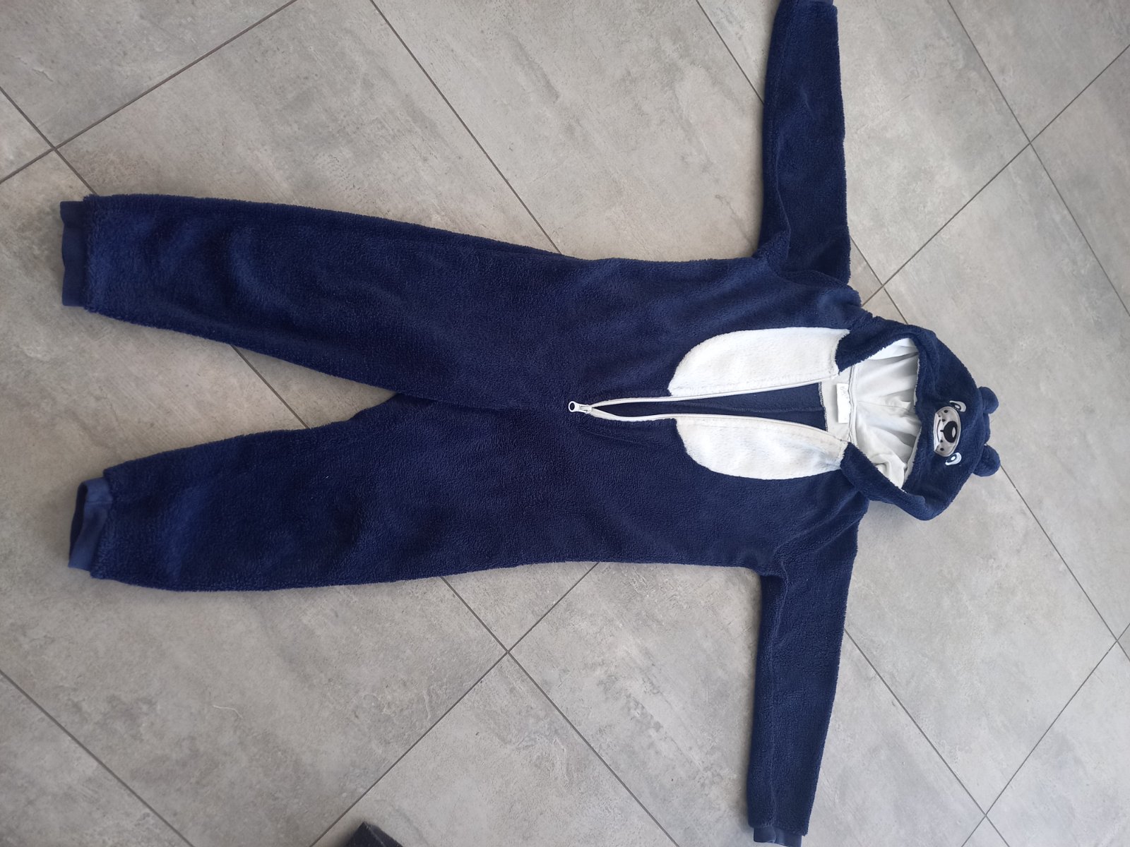 Teplý overal, nosený na spanie, no bez poškodení