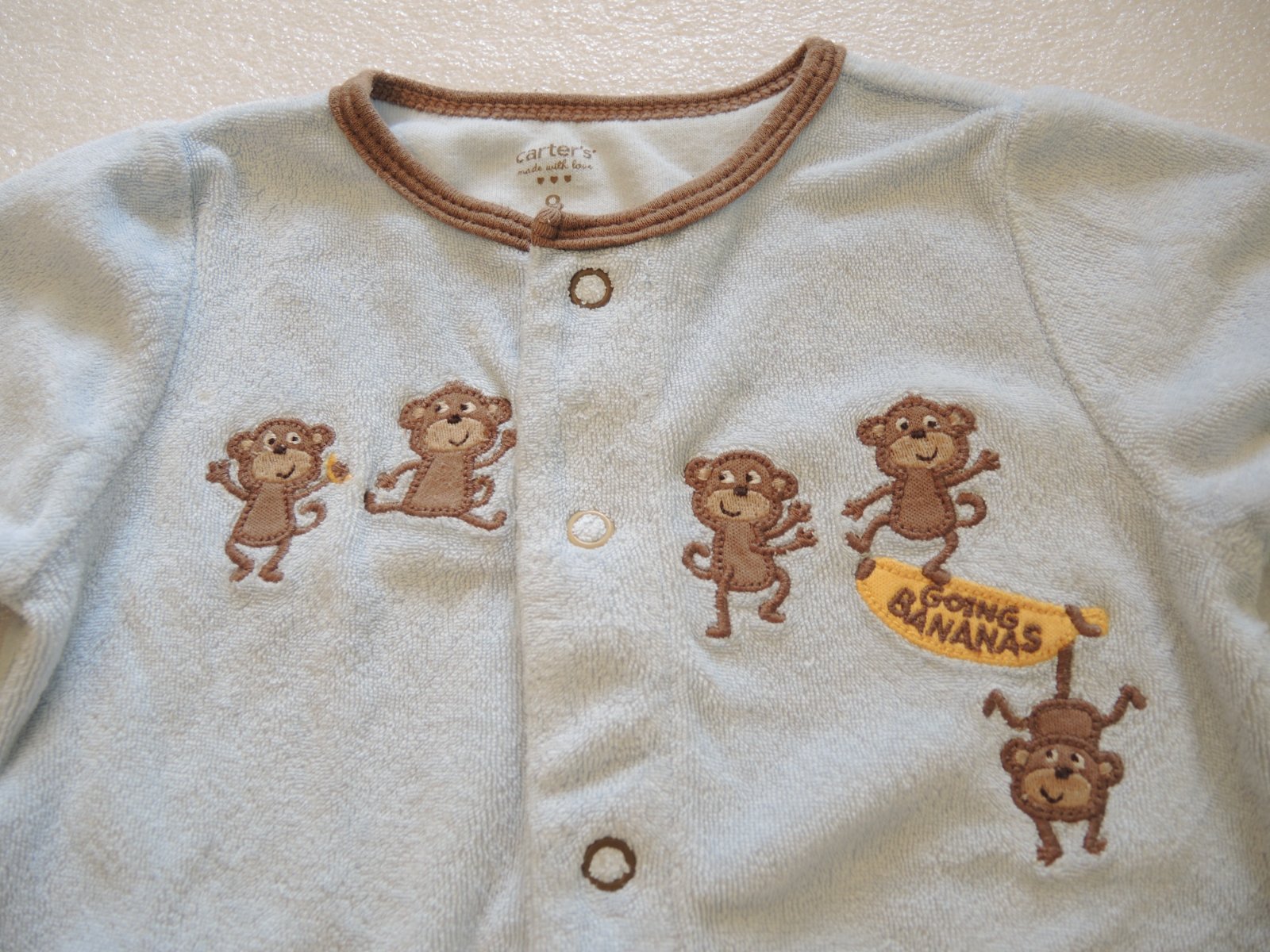 Predám teplučký froté overal č. 9 (veľkosťou sedí na 68). Overalík bol pár krát nosený, pranie trošička vidno na patentoch. Inak krásny stav. Dĺžka od pliecka po pätu je 60 cm a od pliecka po rozkrok 44 cm.