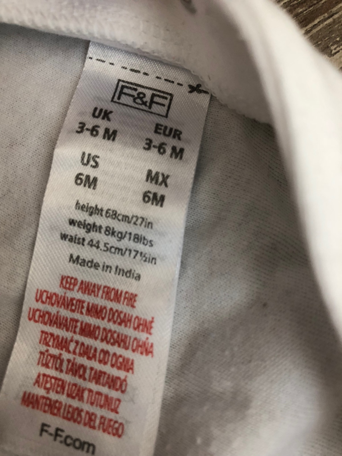 dupačky F&F - top stav velkost 3-6 mesiacov cena 3,90€ celková dlzka: 56cm širka pod pazuskami: 2x25cm rukáv od krku : 27cm F130