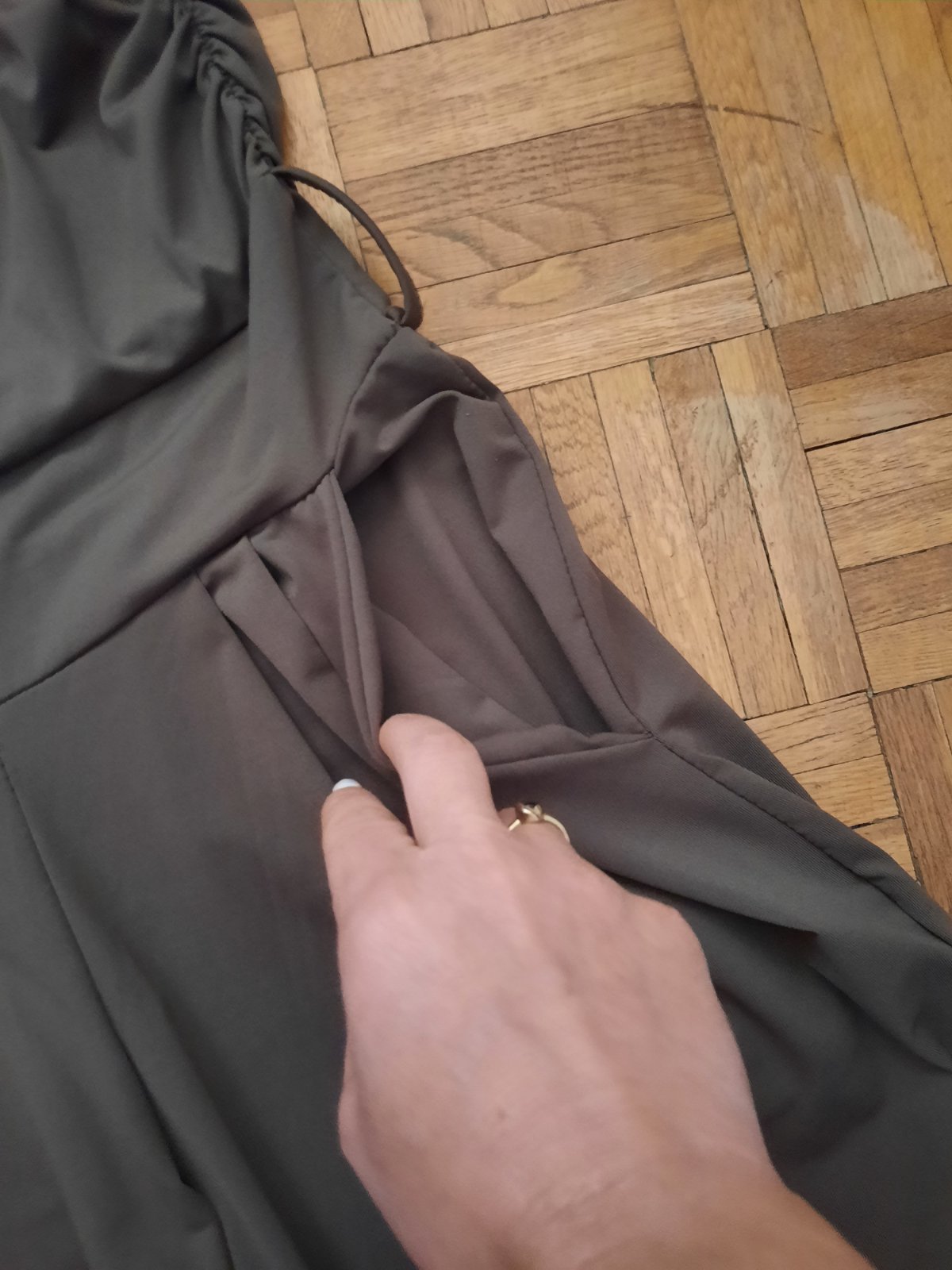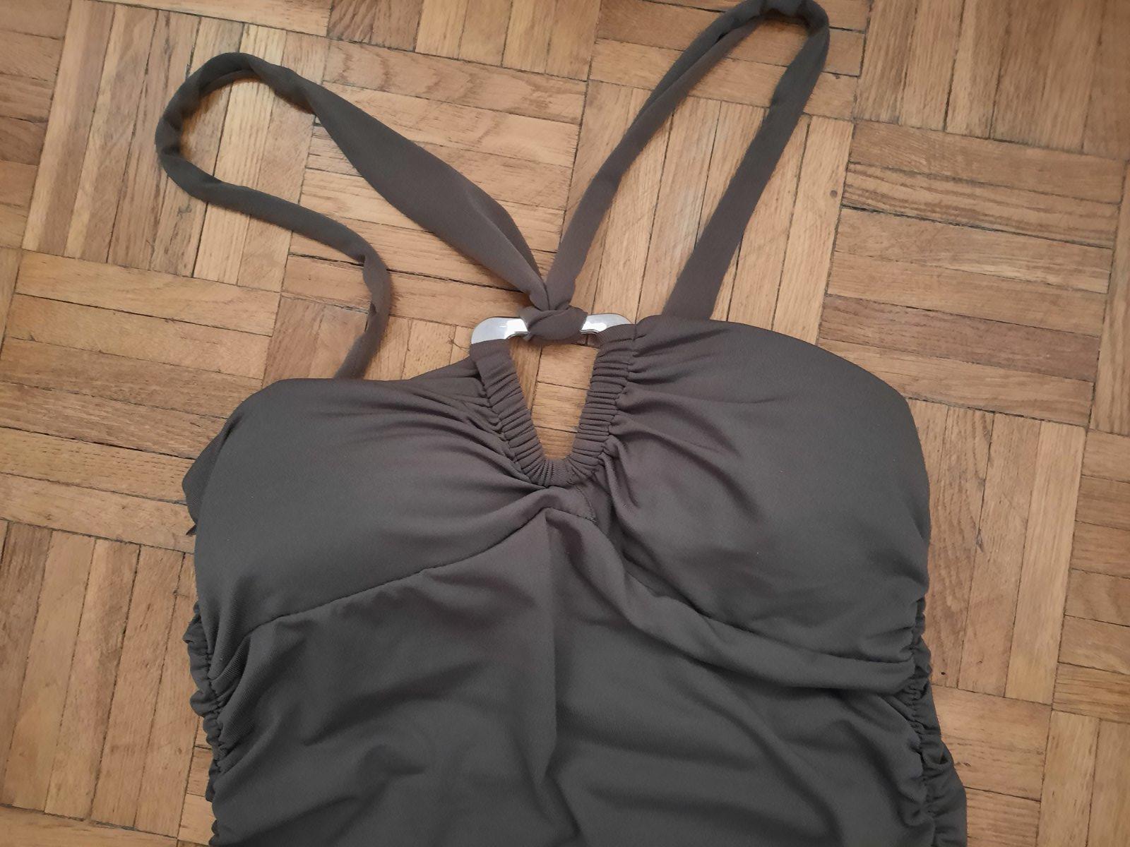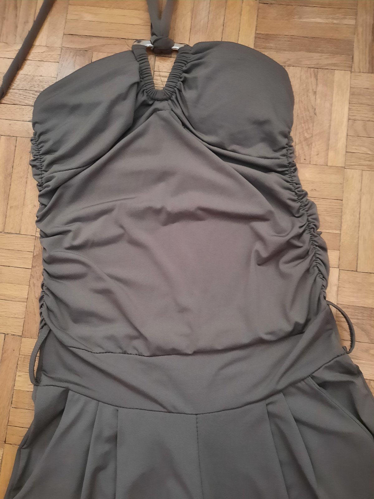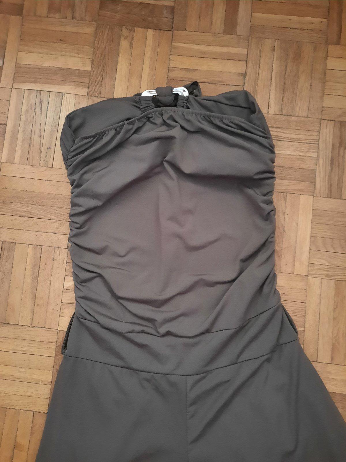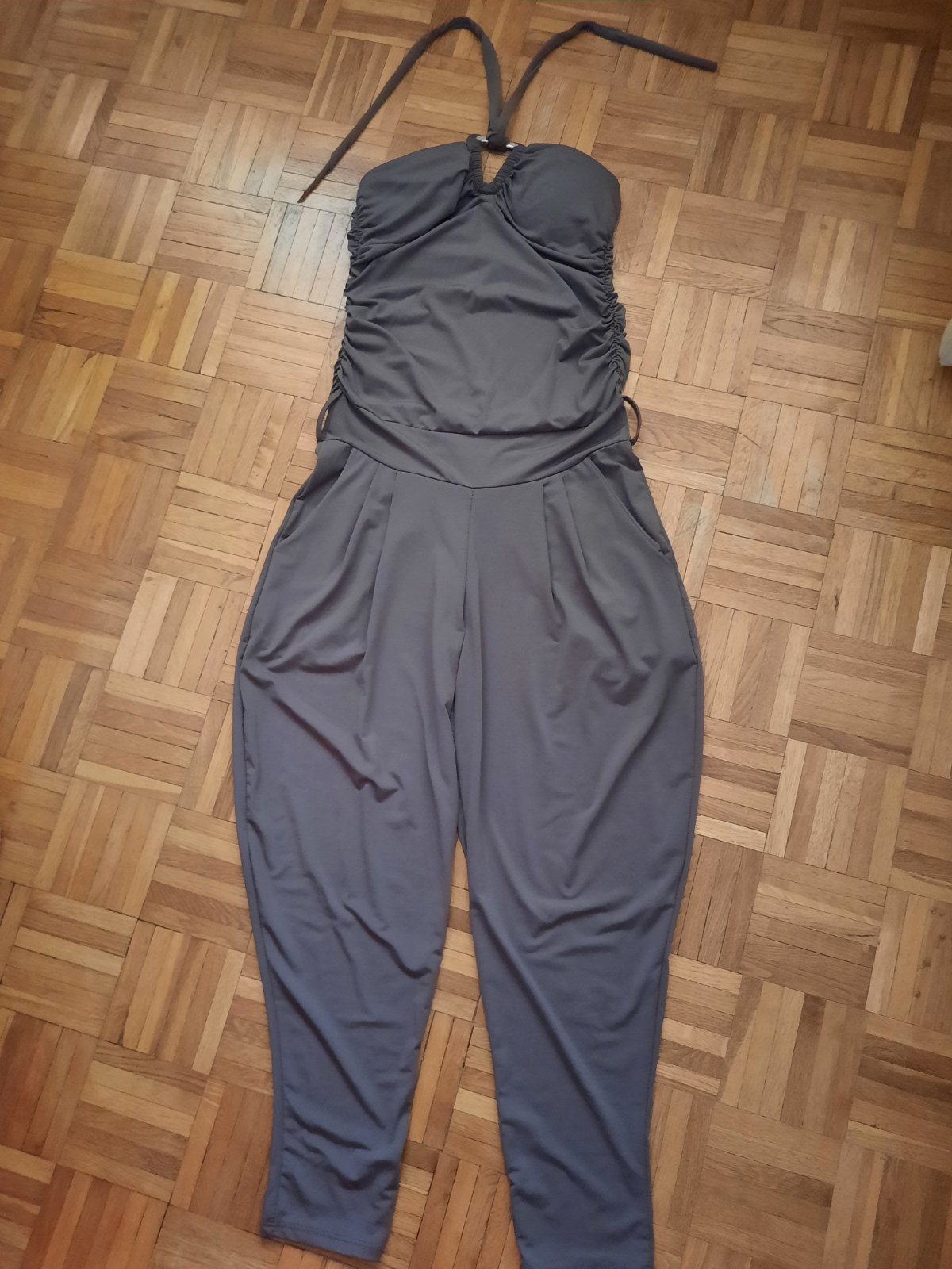 Predám veľmi pekný dámsky overal, super elasticky materiál, pohodlný, nekrčivý. Veľmi dobrý stav. V páse sú prestrihnuté, vpredu sú vačky. Zaväzujú sa okolo krku, chrbát je holý, nohavice sú voľnejšie. V páse sú aj pútka na opasok. Materiál je padavý.