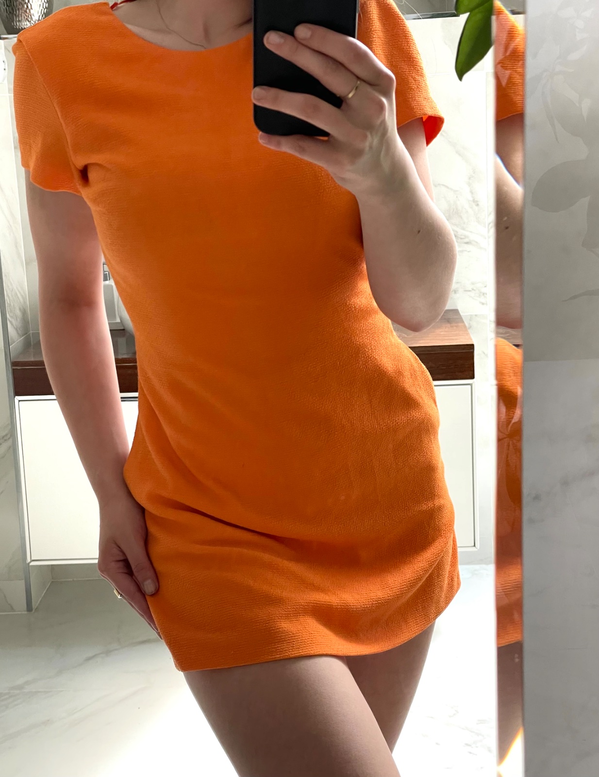 Krátky oranžový overal značky ZARA (kolekcia Trafa