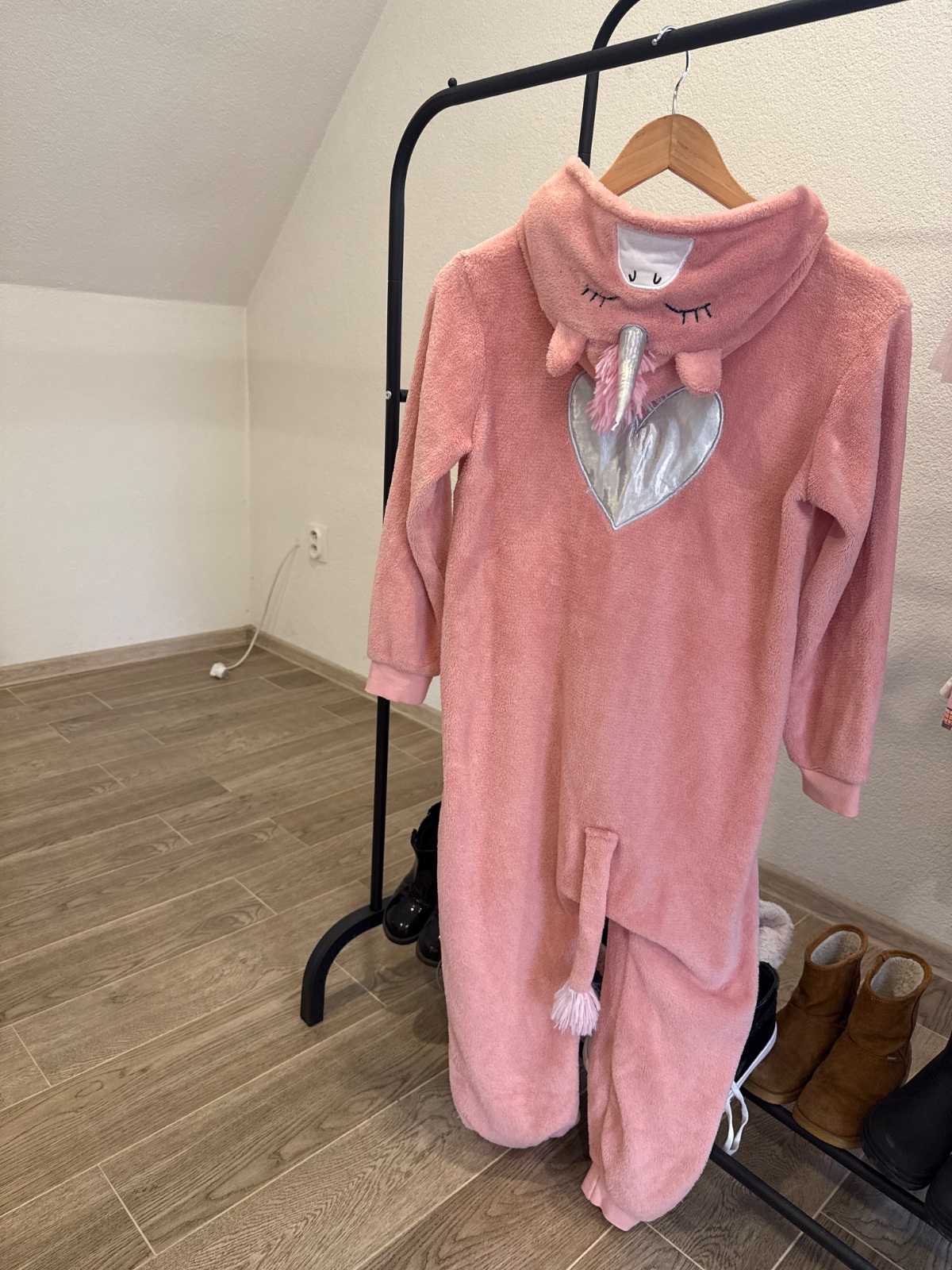Predám hunaty dievčenský overal, iba vyskúšaný, nenoseny, veľkosť 134/140, ma nižšie pudlo cca 10 cm nad kolenami, šírka 45 cm, celková dĺžka 112 cm.