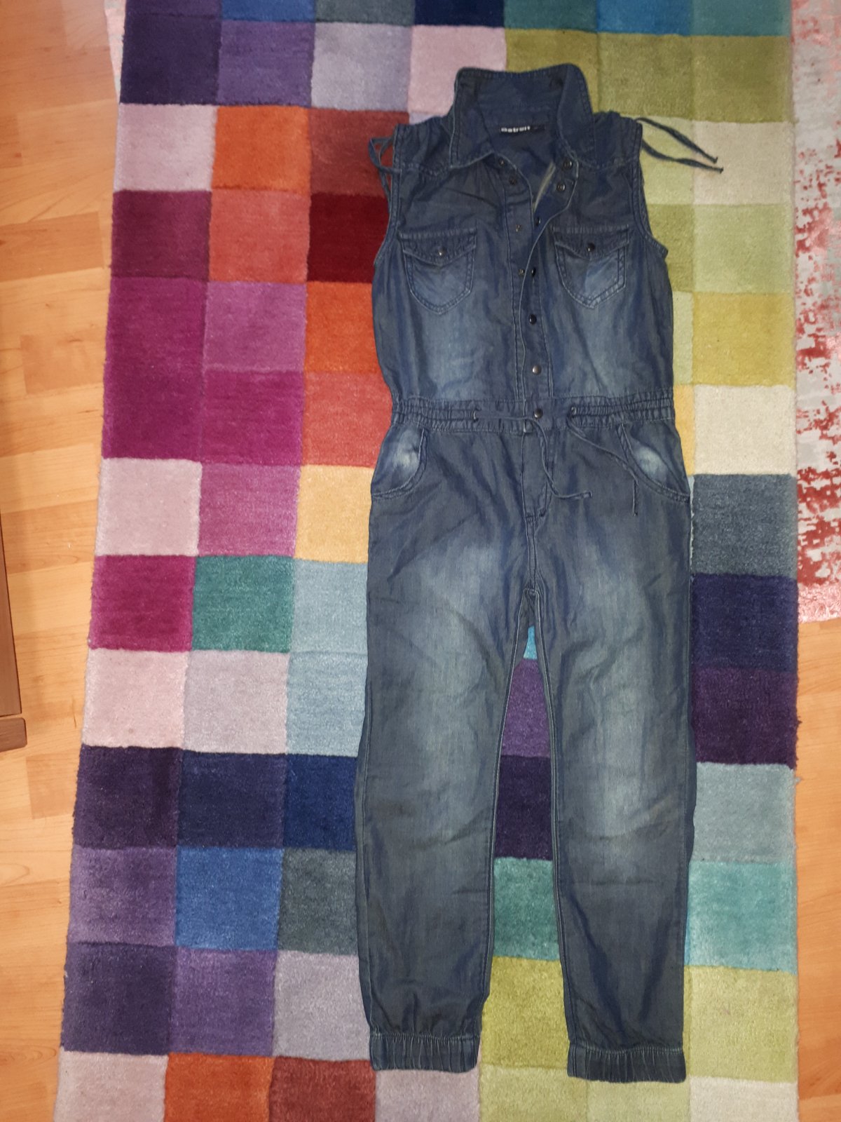 Uzasny letny overal. 100perc lyocell, prijemny vzdusny, lahky material na letne vecery...uvadza 110/116, no ponosite do 122. Dl s ramienkami 96, predne vrecka