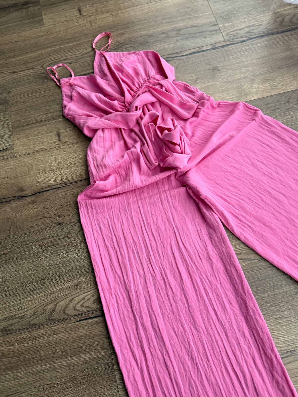 Nový dámsky overal, nenisené, iba skladované v skrini. V páse gumička, pútka na opasok, široké nohavice, univerzálna veľkosť, odporúčam na M a L