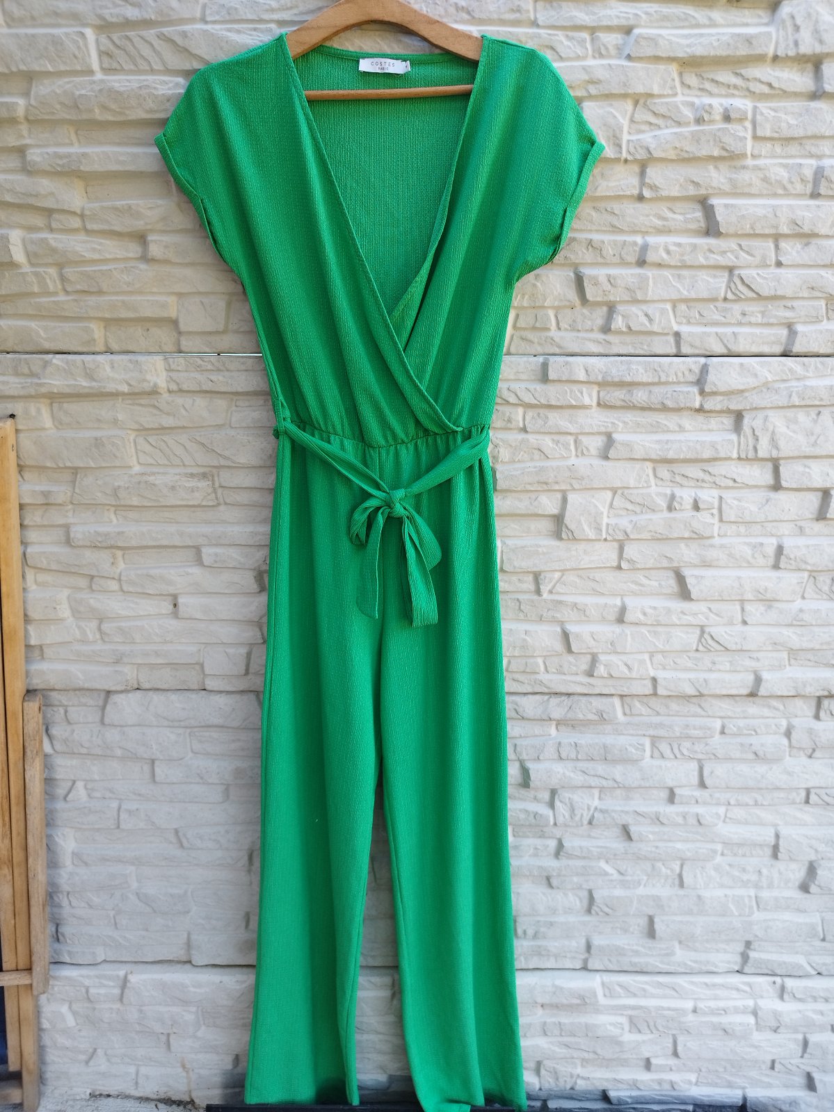 Krásny, minimálne noseny, elastický materiál,po bokoch vrecká. Rozmery Obvod hrudníka 58×2 Obvod pása 41×2, ešte sa natiahne, v páse guma Dĺžka overalu 138 od vrchu po spodok.