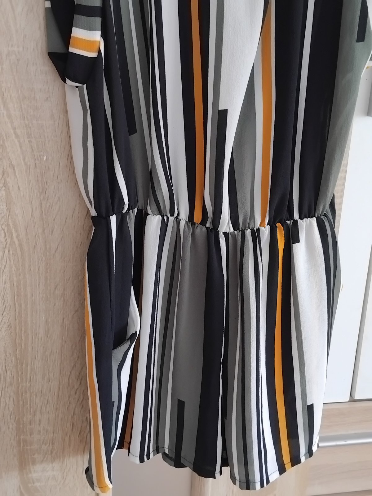 čierno zlaty kratky overal. s 2 vreckami. dole su nohavice nie šaty. je tam putko na opasok...cez cele prsia je gumicka = prisposobia sa maximalne. na vrchu je gumicka proti padaniu. kupovane v UK....