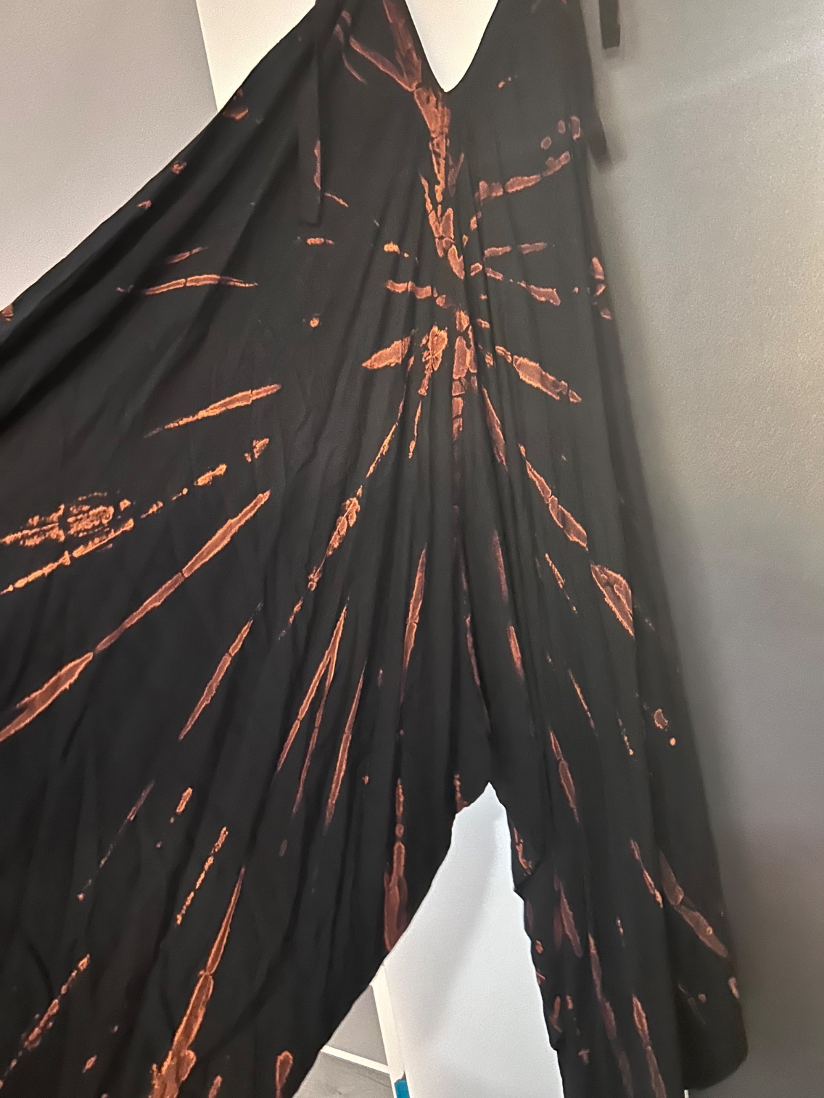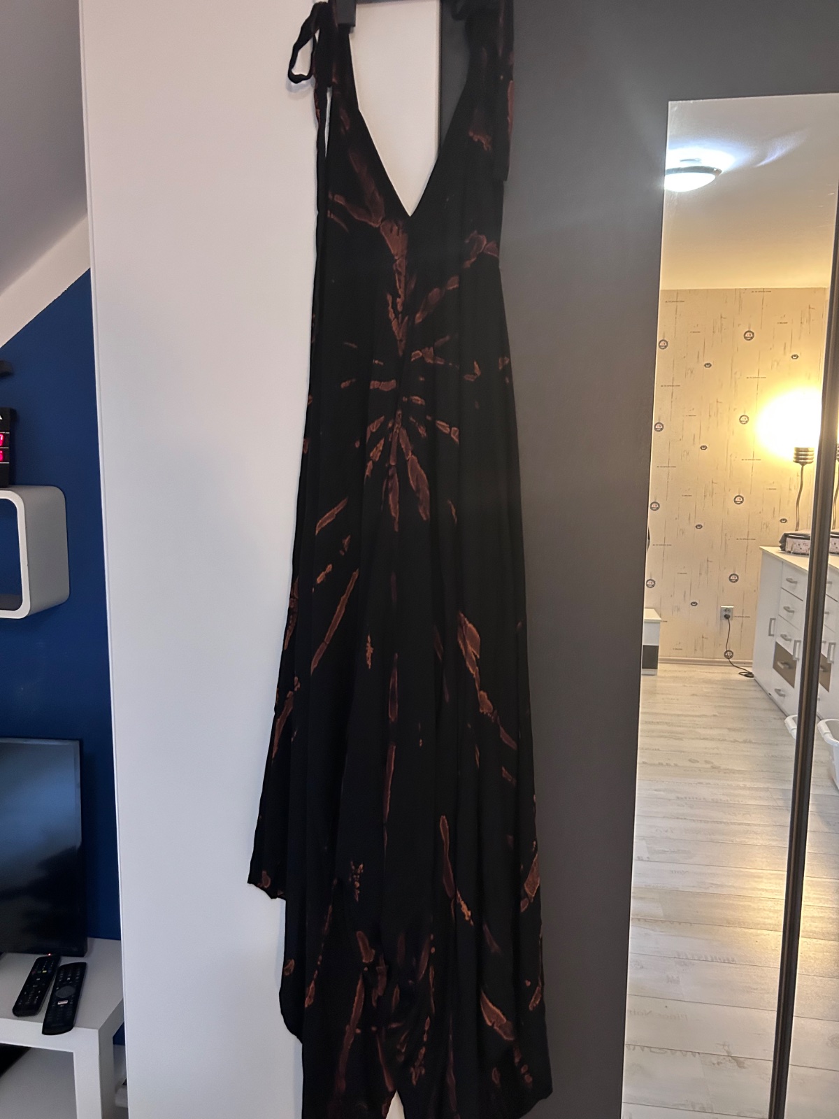 Perfektný overal s vreckami, aj na slávnostnú príležitosť! Dĺžka - cca 135 cm, šírka pod pazuchami - 2x 50/62 cm, pás - max. 2x 57 cm, boky - 2x 56/71 cm.