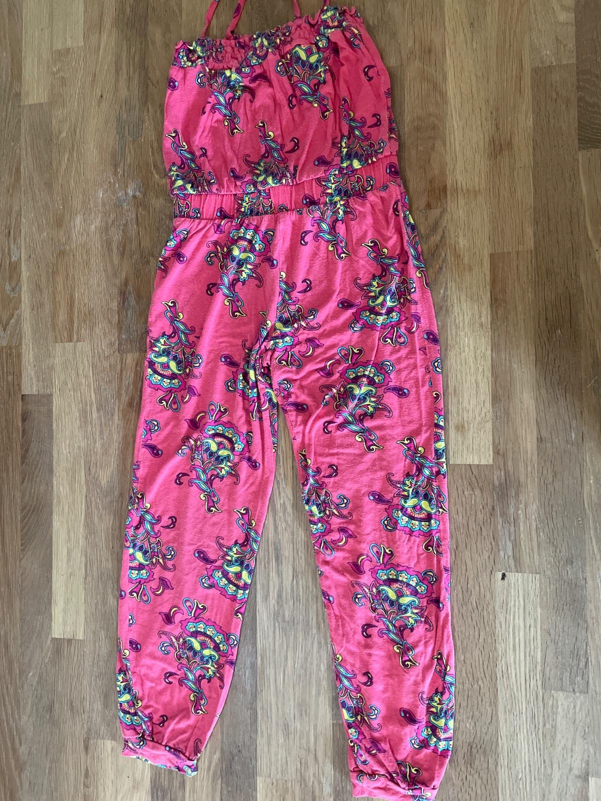 Letný overal s ramienkami a gumou v páse. Dvojčíslo 134-140.