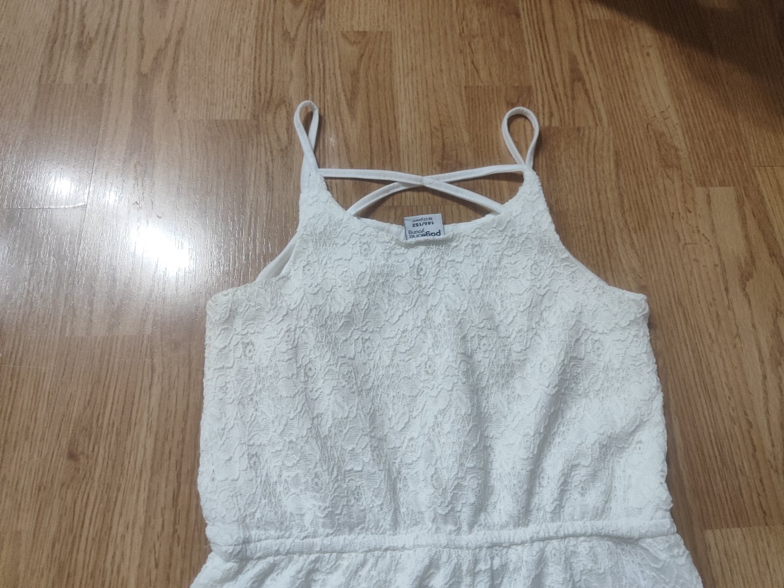 Perfektný na horuce letne dni, krasne sedi, s kopou zaujimavych detailov, ramienka sa daju nastavit podla potreby..super stav, bez chyby...sirka 40, pas guma v klude 30, celkova dlzka 75cm