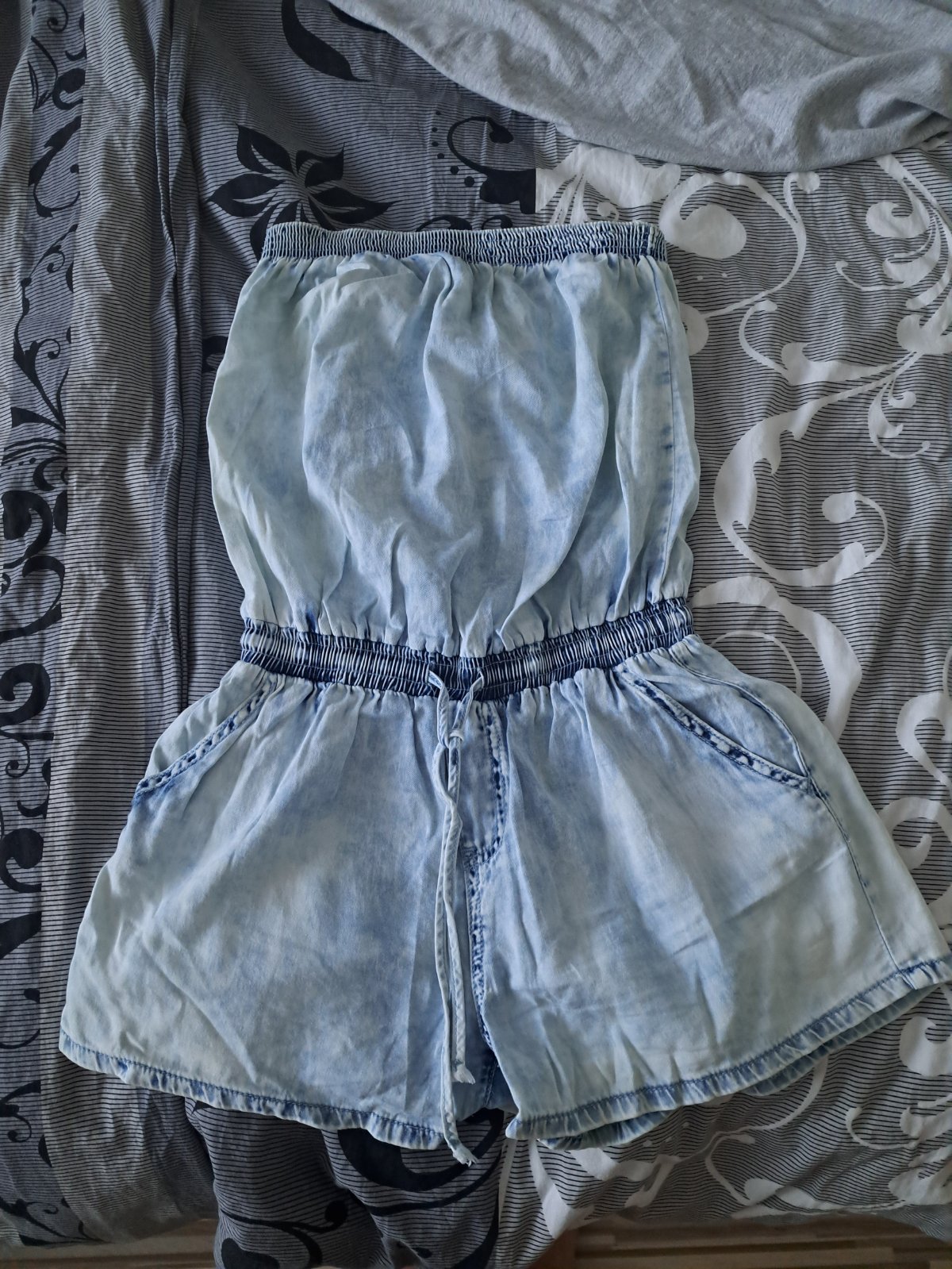 Predam tento super krasny riflovy overalik z Teranovy. je vhodny na leto, je to makky prijemny material nie klasicka riflovina. Overal je v krasnom stave snad len raz opraty. odporucam. cena je 9.9...