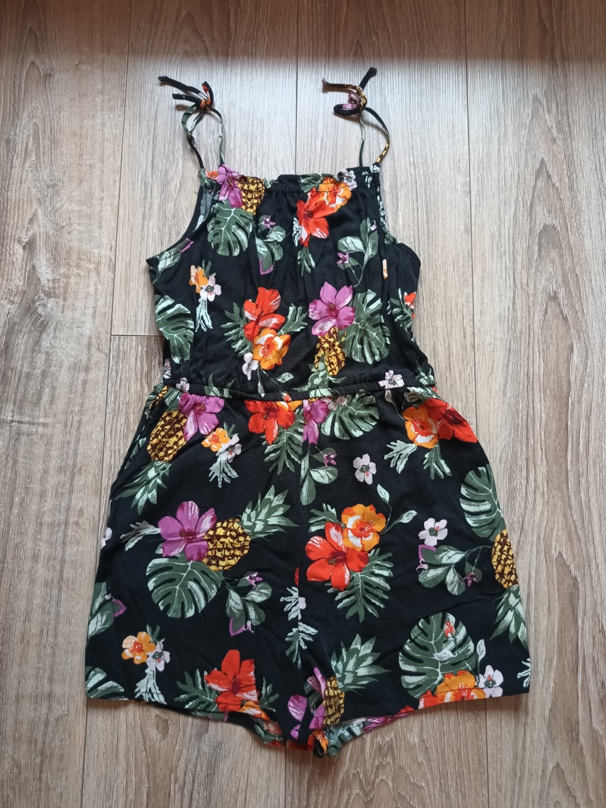 Predám letný overal, zn. H&M, príjemný ľahký materiál (100% viskóza), málinko nosený, top stav, bez poškodenia a fľakov. Veľkosť je uvedená 146, ale je určite menší; sedí skôr na veľkosť 134/140.