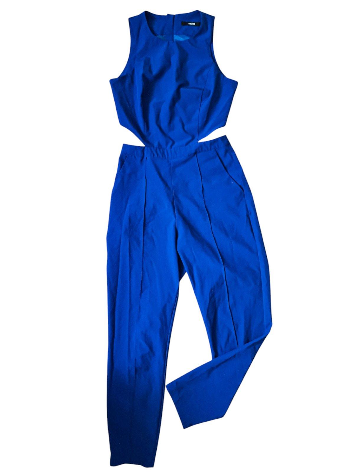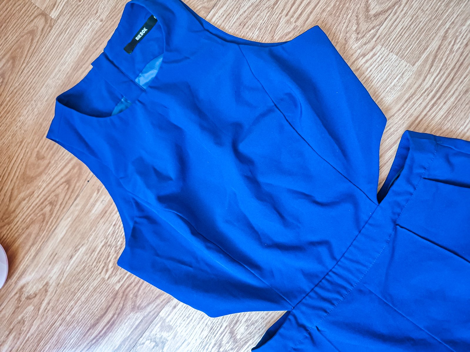 dámsky modrý vykrojený overal , má puky, je elegantný aj športový