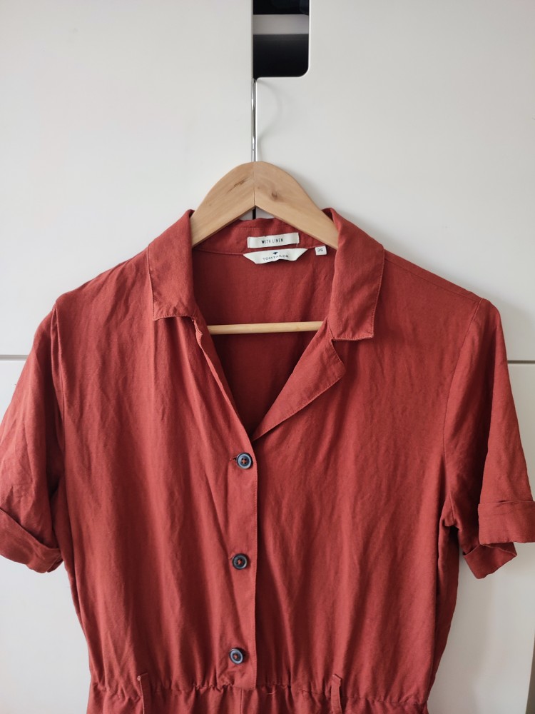 krátky overal tehlovej farby, materiál ľan - viskóza, super strih, vrecká. veľkosť sedí, ja nosím 38 a je mi tesný. top stav ako nový.