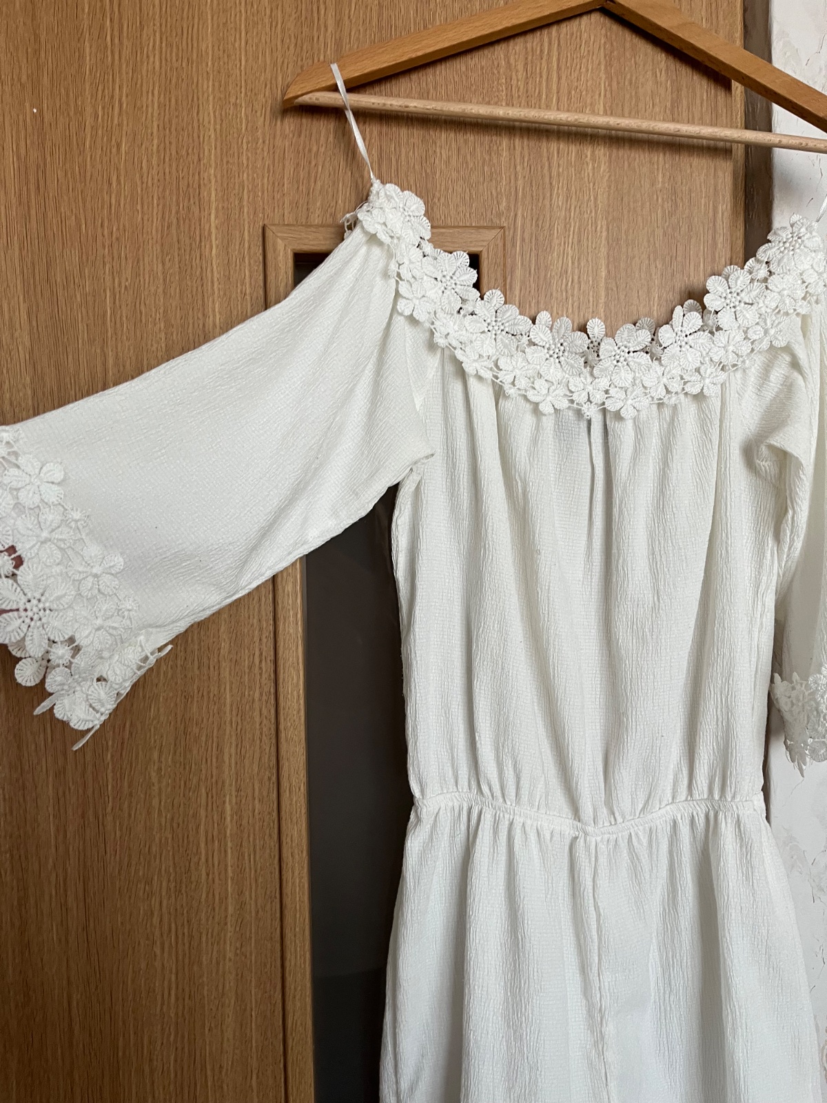 Predám raz oblečený biely overal značky Amisu, Veľkosť 32 ale sedí aj na postave 34