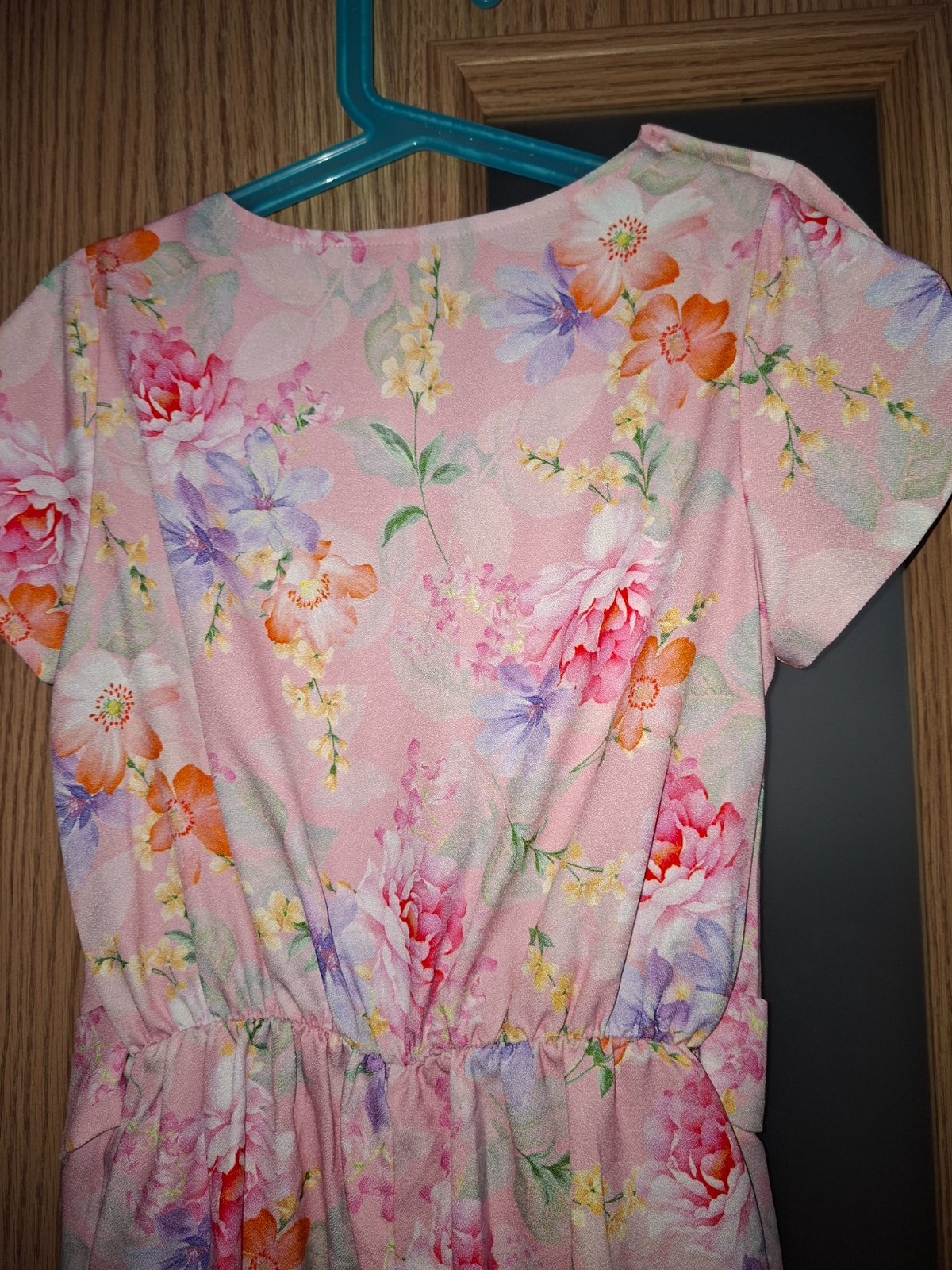 Nádherný overal s volánikmi na ramenách a vzadu otvorený chrbátik, veľmi šmrncovný...na 8-9 rokov