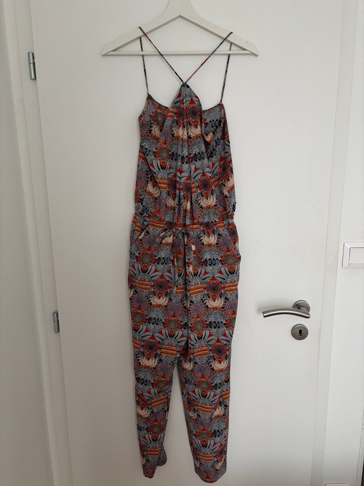 Pestrofarebný dlhý overal na ramienka značky Zara s možnosťou utiahnutia na páse, zapísanie na zips, veľkosť XS, bez poškodení a známok opotrebenia. Overal je vyrobený z pohodlného nekrčivého materiálu. Overal bol kupovaný v Zare vo Viedni. Osobný odber je možný v BA a NR.