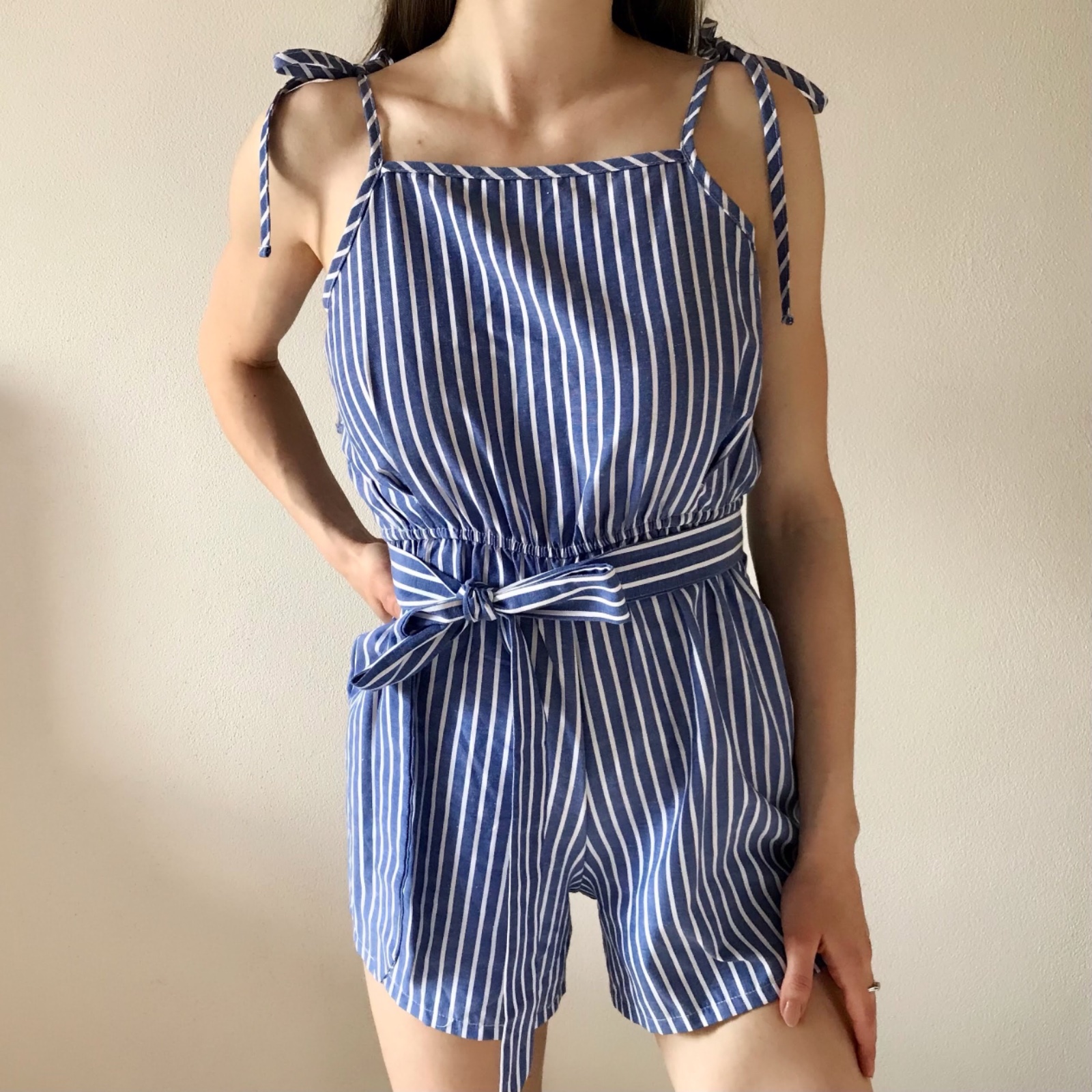 Pásikavý bavlnený letný overal, bezchybný.
