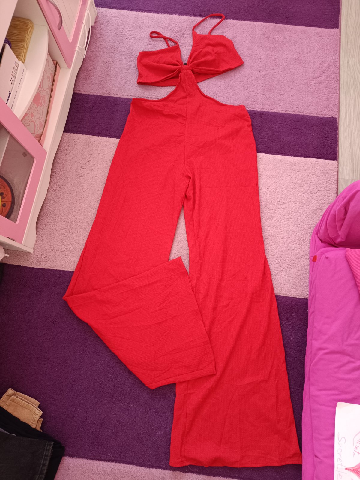 H&M nádherný damsky overal na slavnostnu príležitost vo velkosti M -38, satenový takže uplne lahučky s holým chrbtom vzadu Nemala som ho ani raz takže je v 100% stave Krásna sýto červena farba v kt...