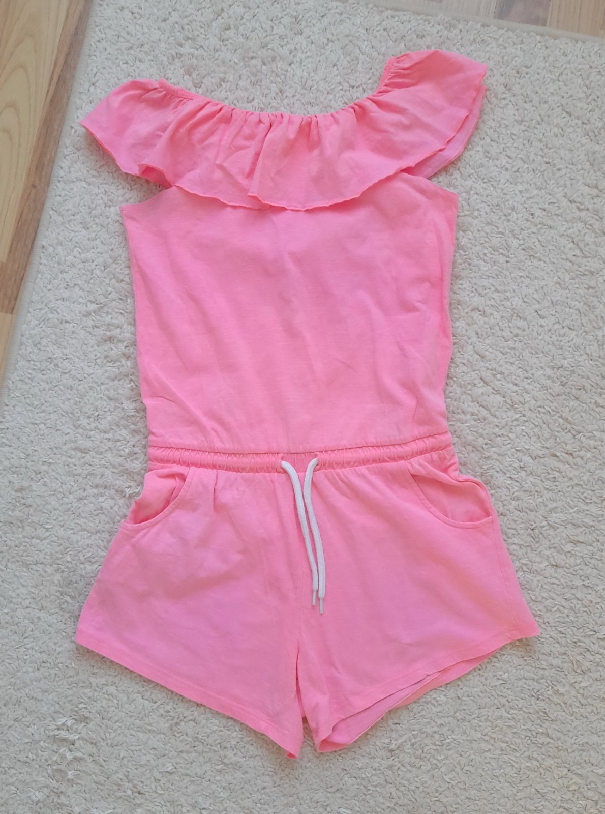 ľahký materiál, bočné vrecká, horný okraj na gumu, dĺžka od pása 26cm, pás 35-40x2cm