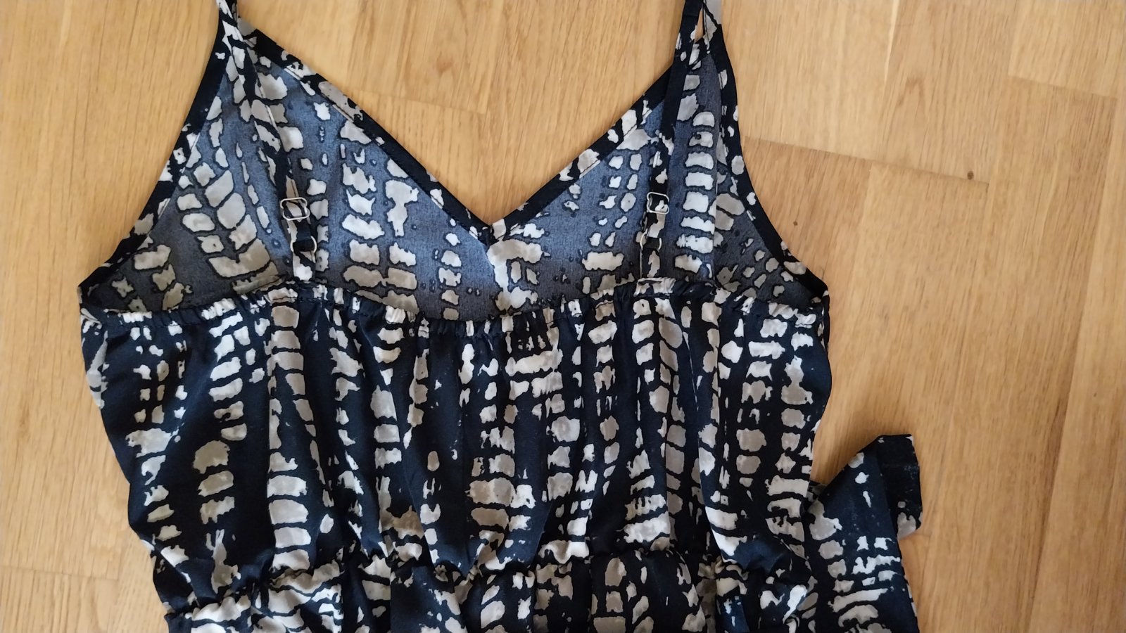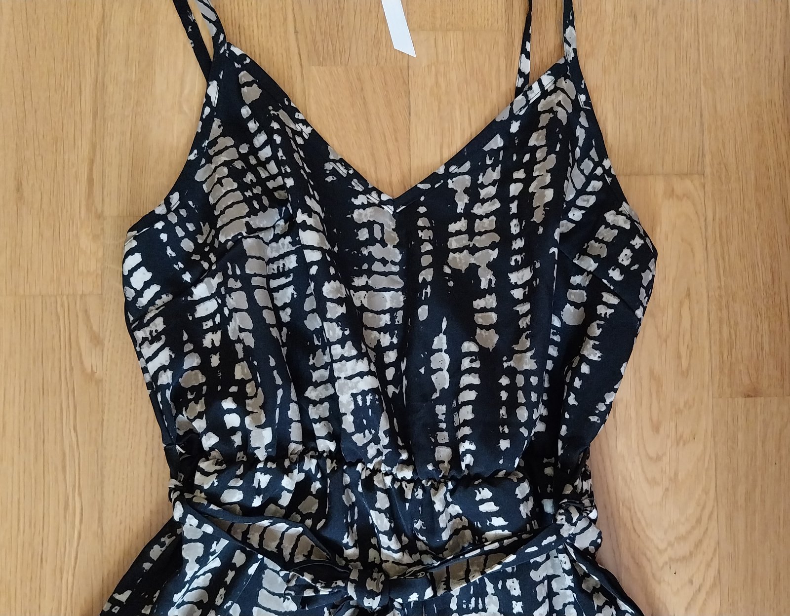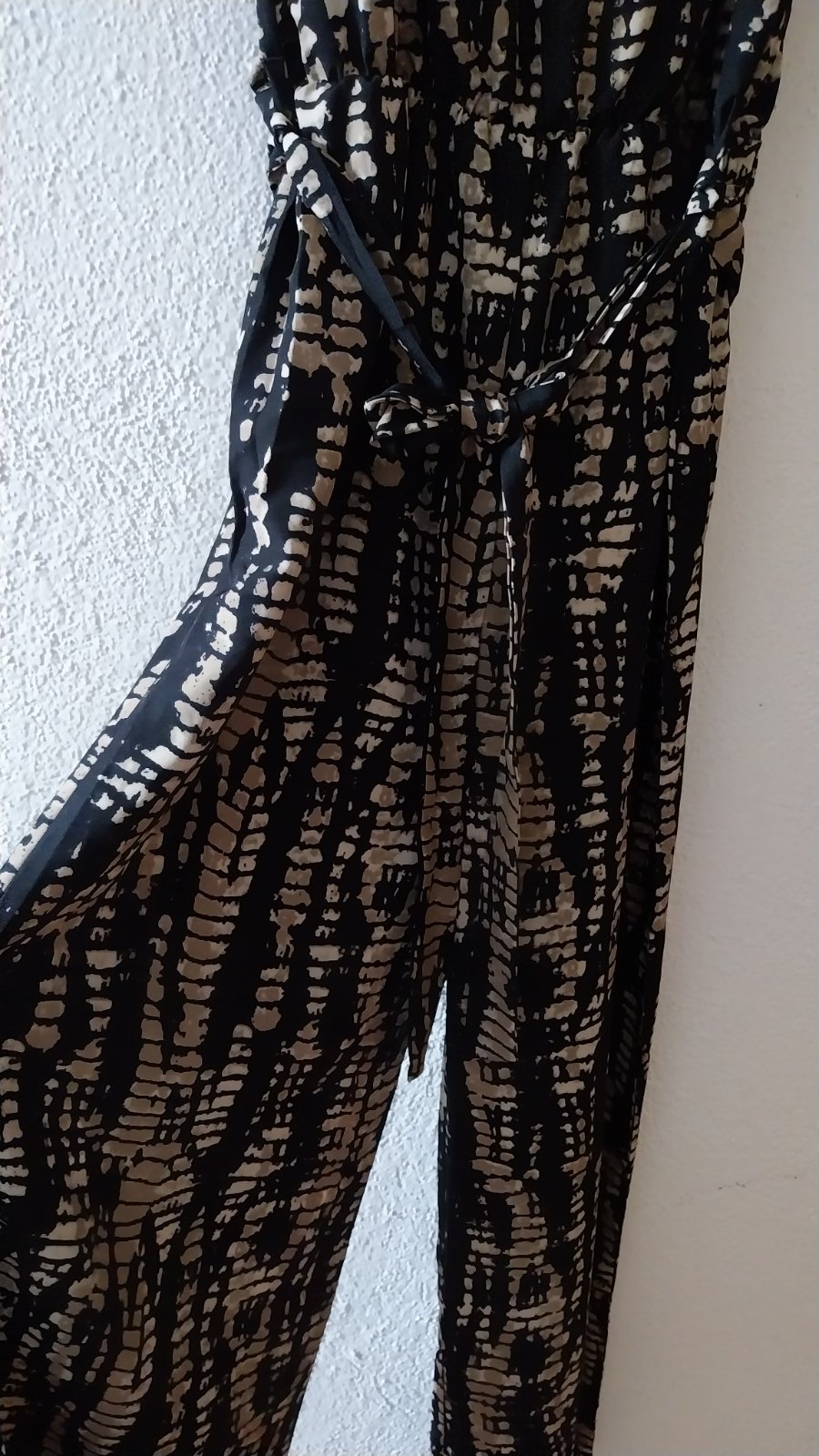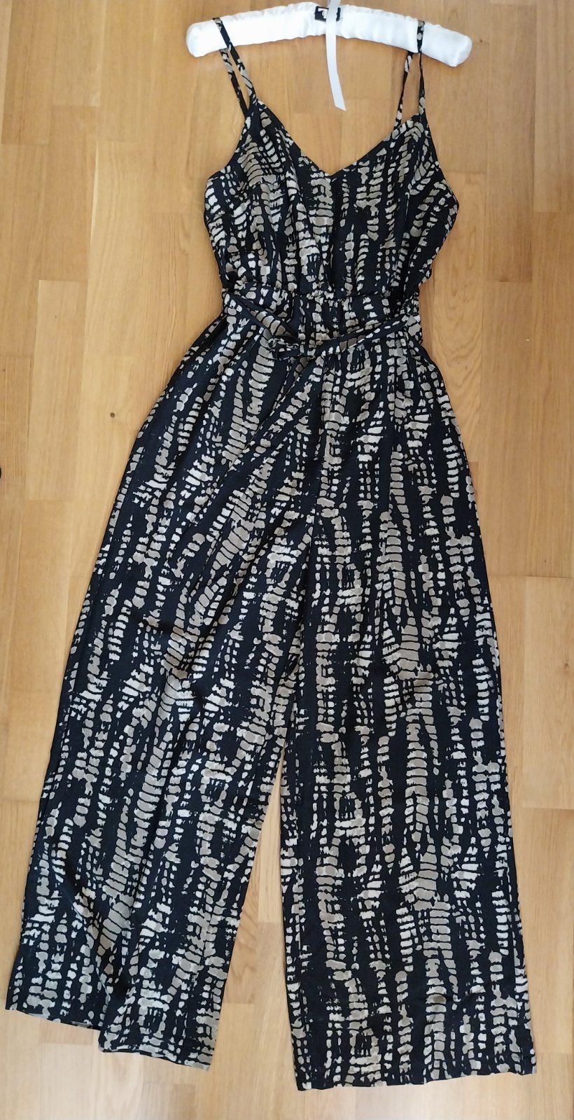 Letný ľahúčky overal. Voľný strih. Nataviteľné ramienka. Vzadu je gumičky, čiže krásne sedí. V páse opasok. Vďaka gumičke sa "rýchlo" a pohodlne oblieka aj vyzlieka (keď potrebujete napr. na WC). Top stav, ako nový. Sedí na veľ. 38/40