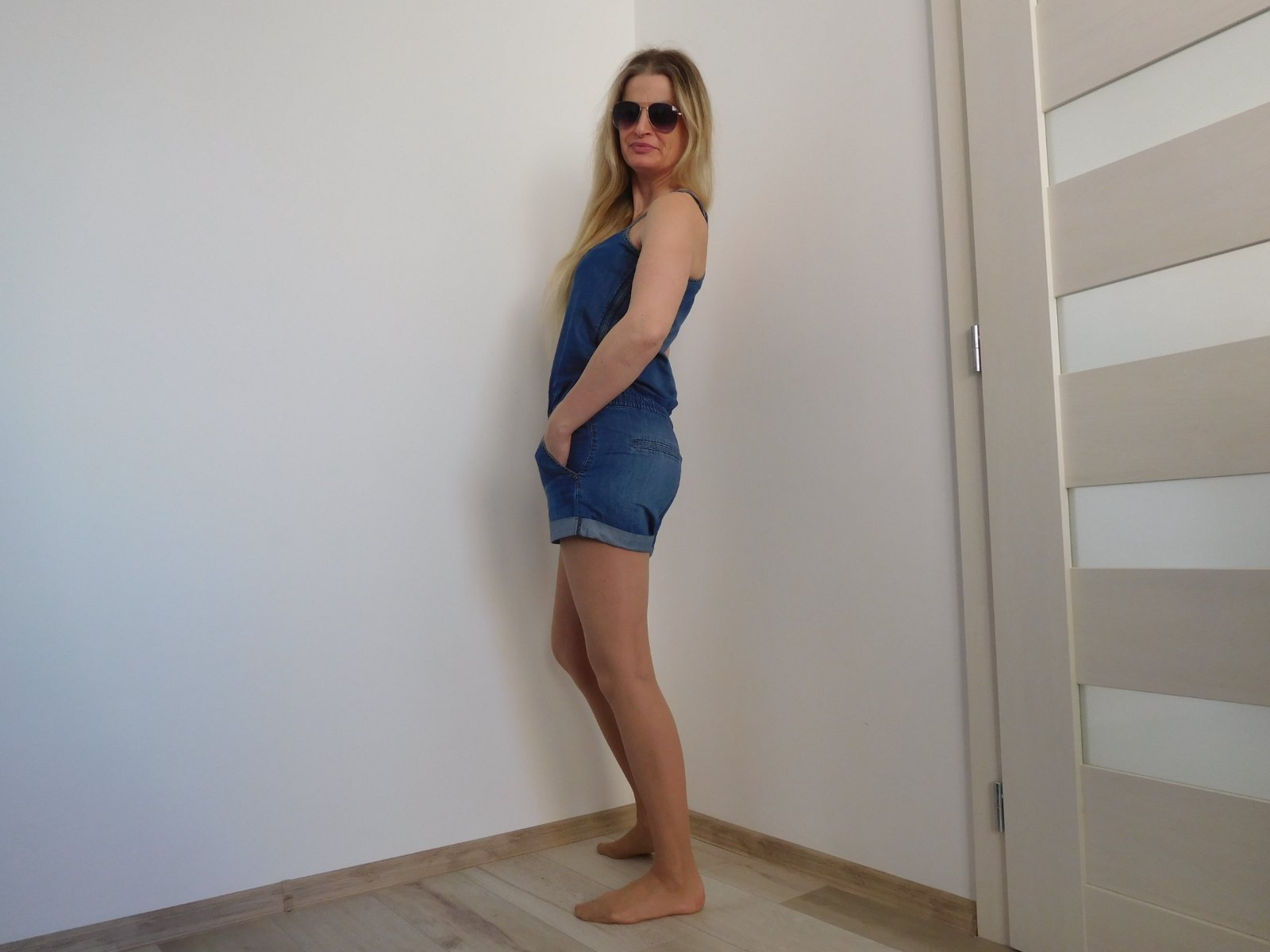 Overal je z velmi mekkej príjemnej rifloviny,velmi pekne ukáže na postave ,po strane má zips,ramienka sa dajú nastavovat podla potreby,velmi dobre nositelný,velmi dobre ošetrovatelný,zakúpený v značkovej predajni