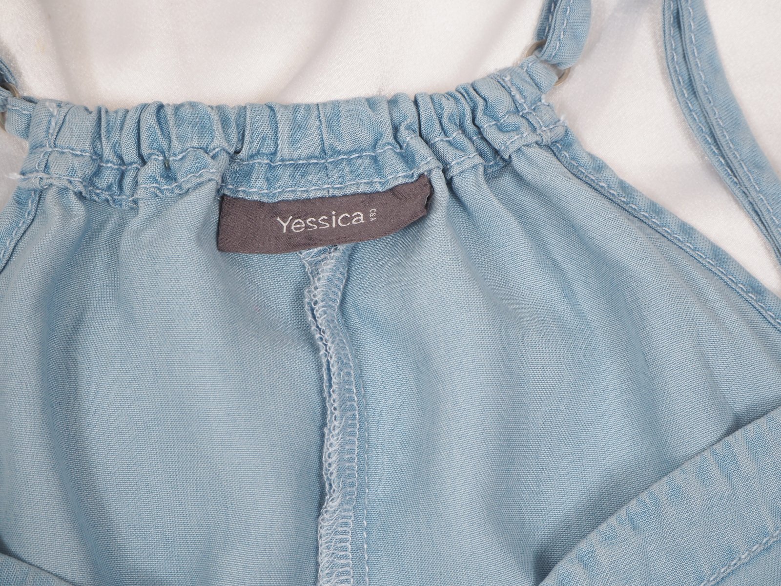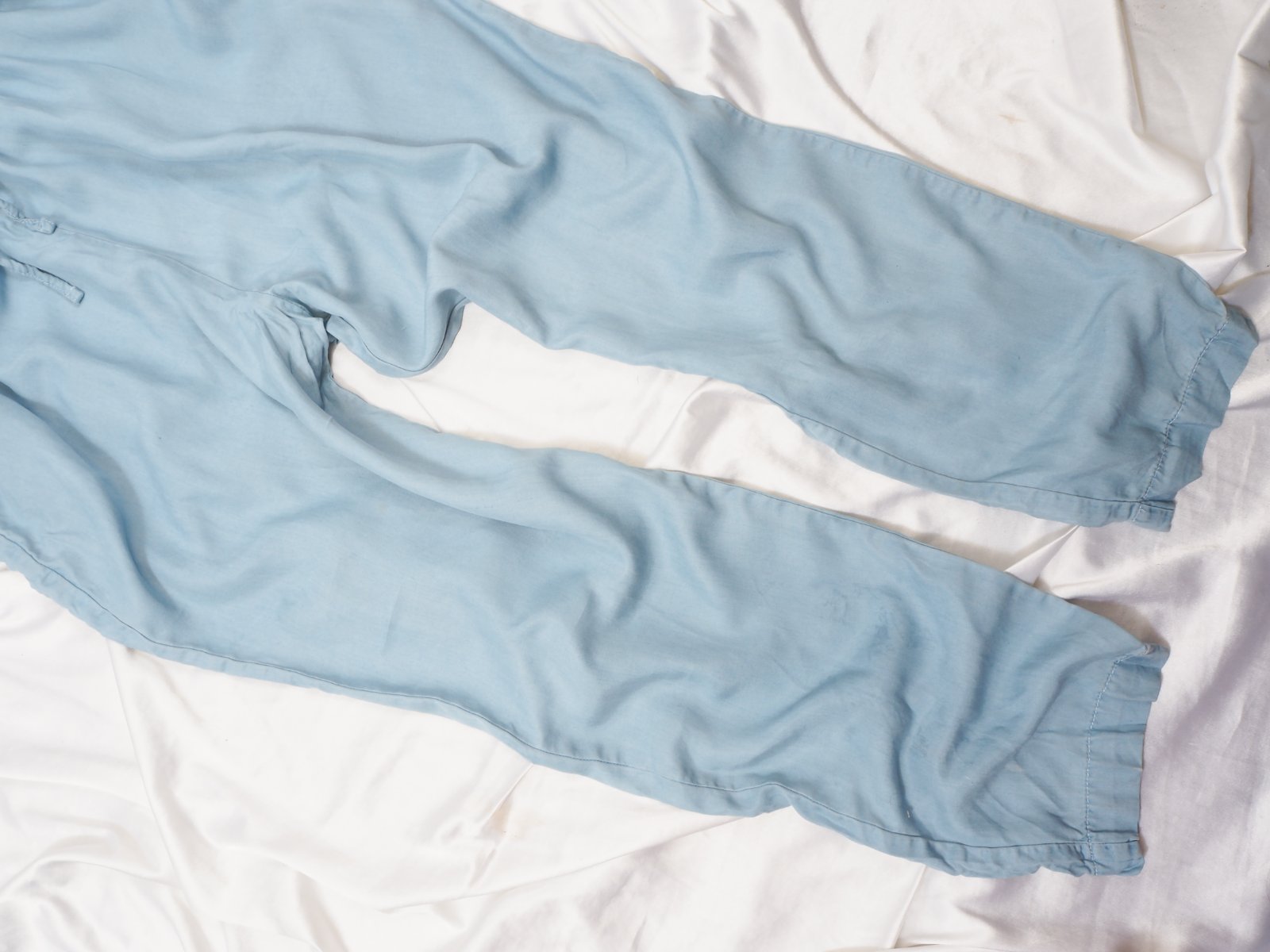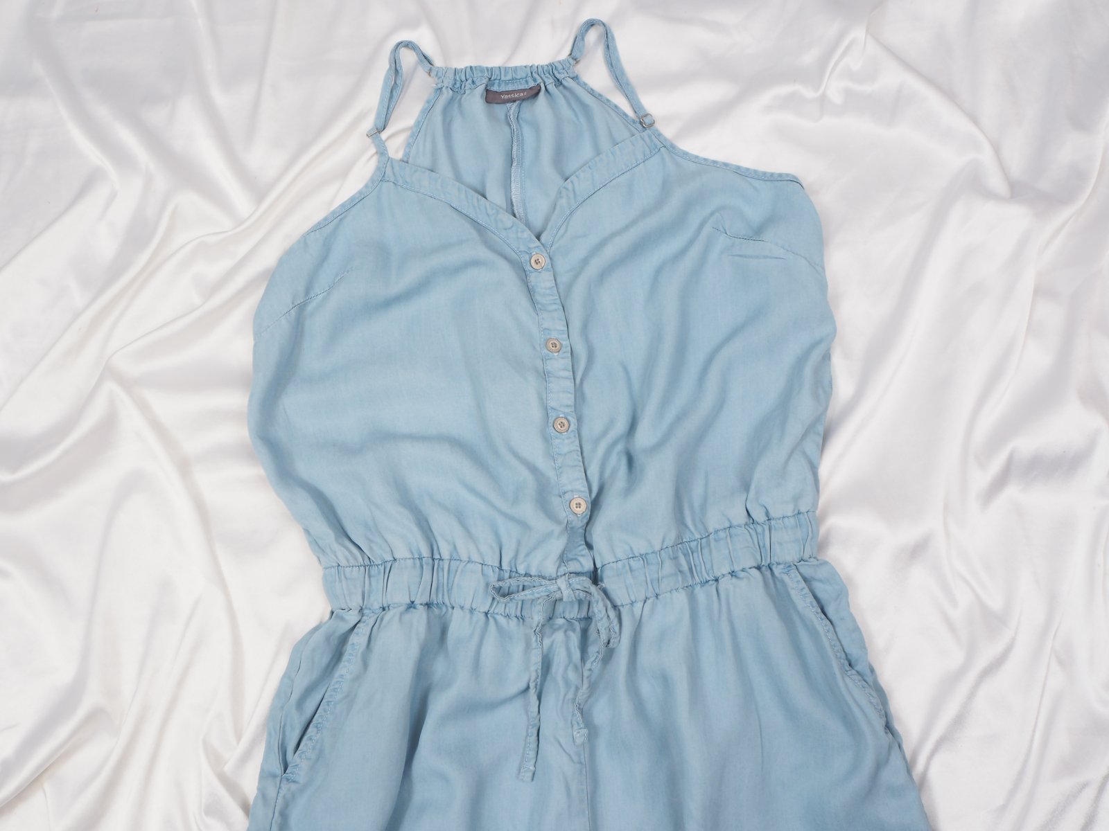Kvalitný letný overal, bledomodrej farby, v páse gumka, materiál 100% lyocel, super stav.