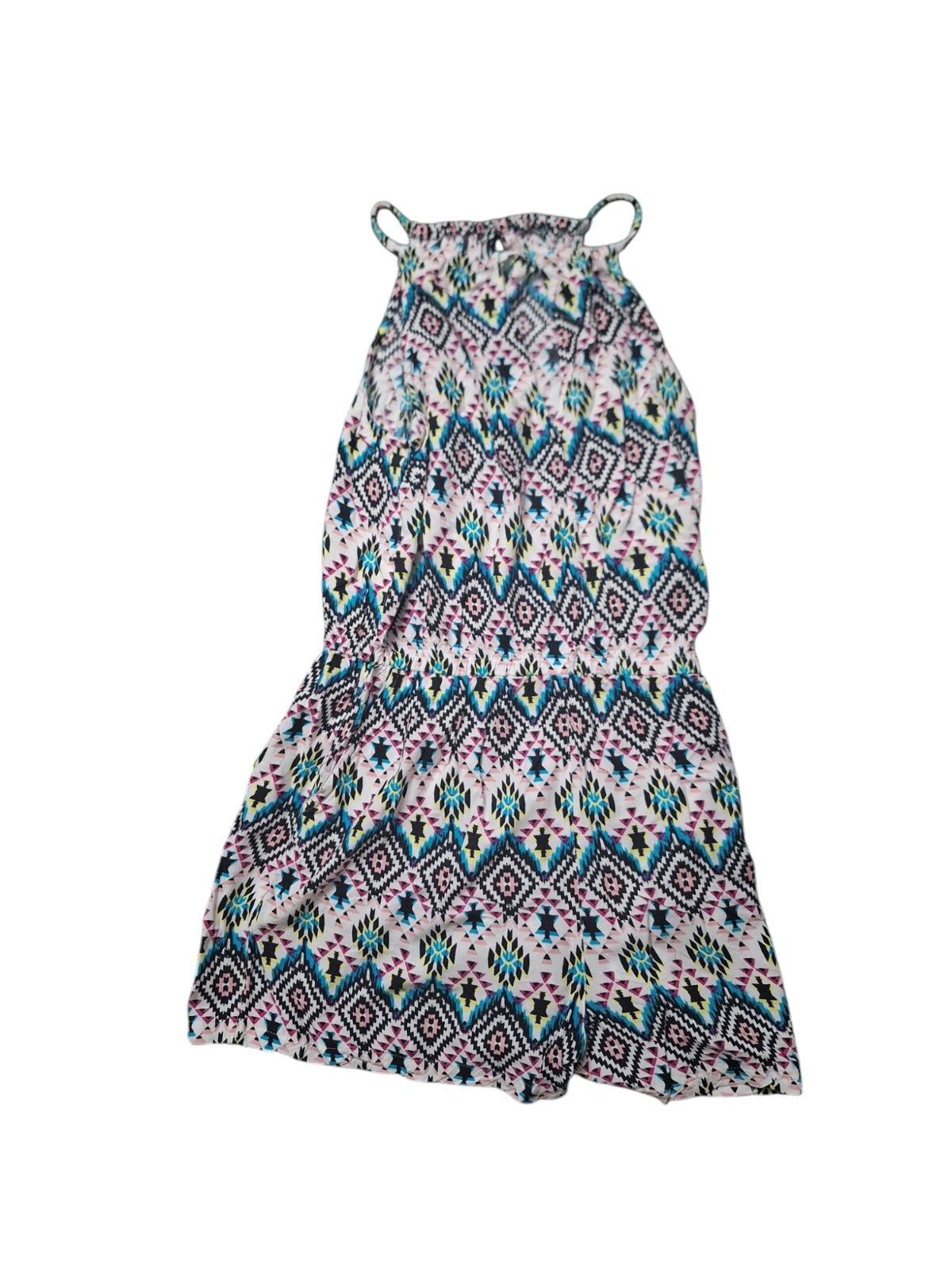Dámsky overal. V páse je guma a zapínanie je vzadu na 1 gombík. Dĺžka je 80cm, obvod hrudníka je 90cm a obvod pása je 82cm. kód 203