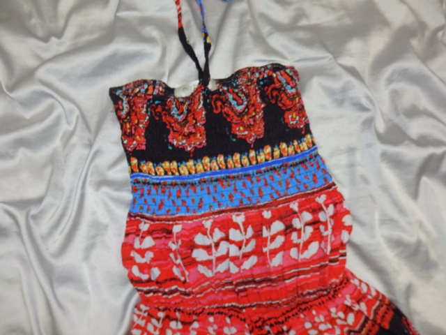 Kvalitný krátky overal, zvršok nariasený do gumiek, uväzovanie okolo krku, alebo s mašličkou vpredu, materiál 100% viskóza, super stav. ....darujem k objednávke, váha balíčka spadá pod príslušnú výšku poštovného....
