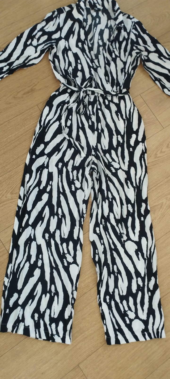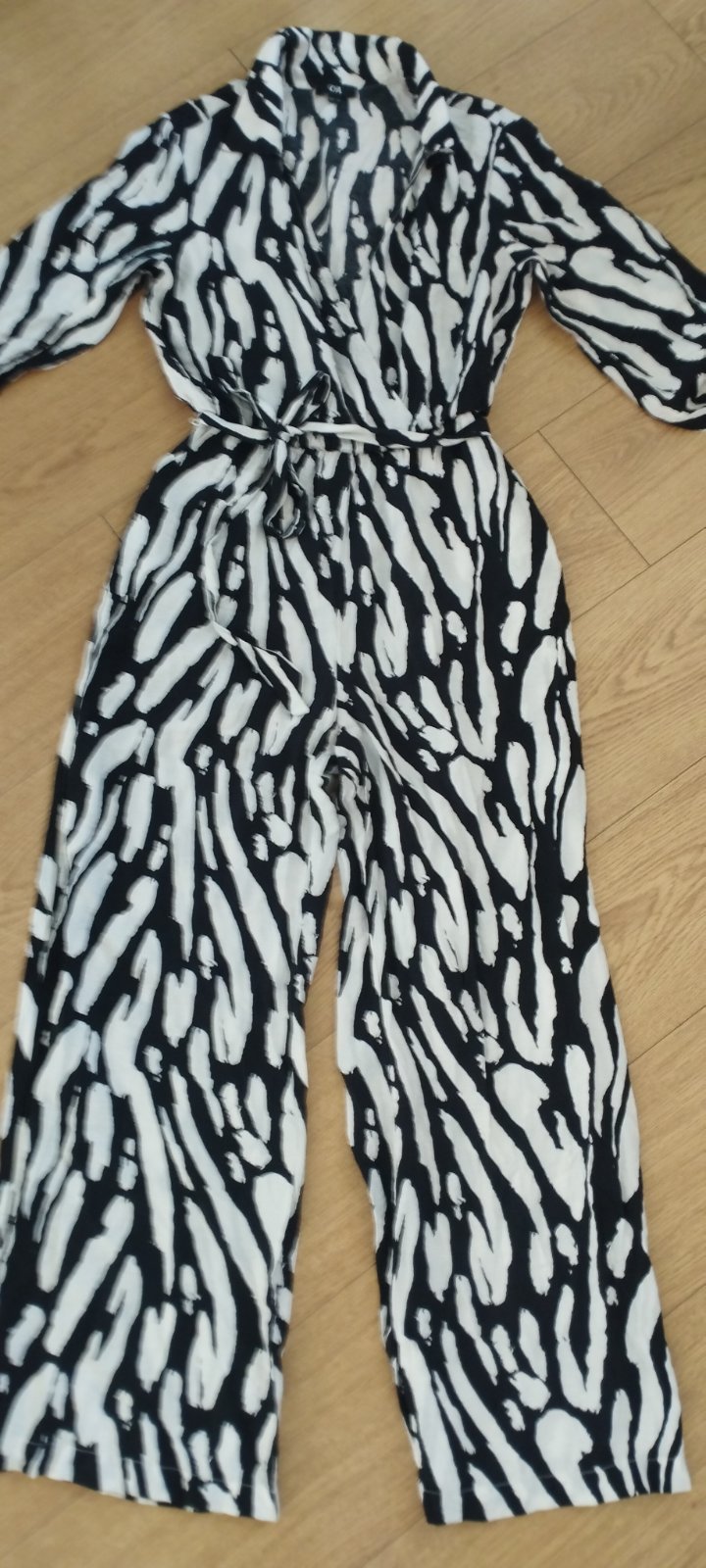 Nový prekrásny overalový kostým Karen Millen vo veľkosti L (40), ktorý sa skladá zo saka na previazanie a plisovaných širokých nohavíc. Spojené vnútri ako vidieť na foto. Celková dĺžka 156cm, dĺžka...