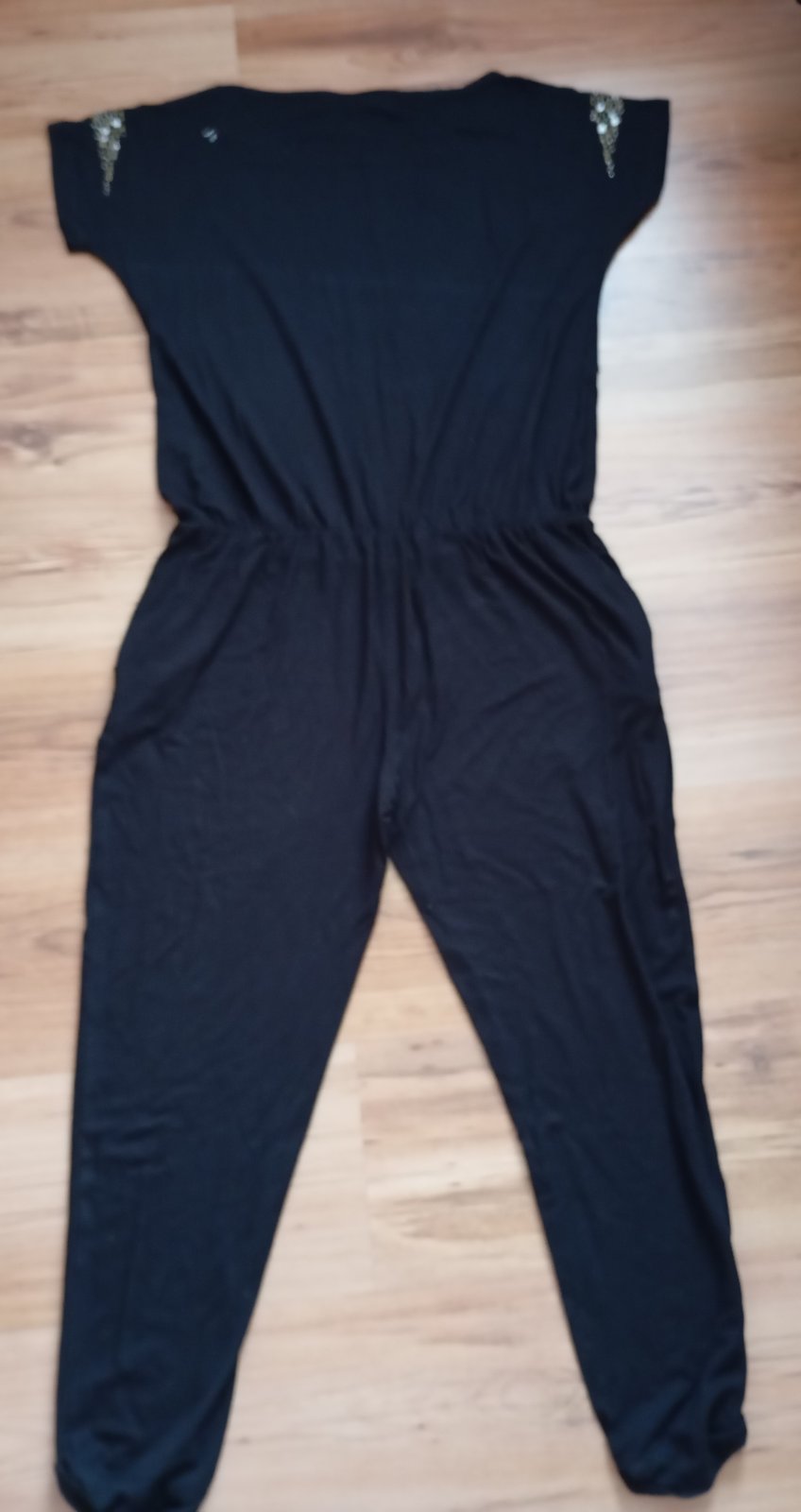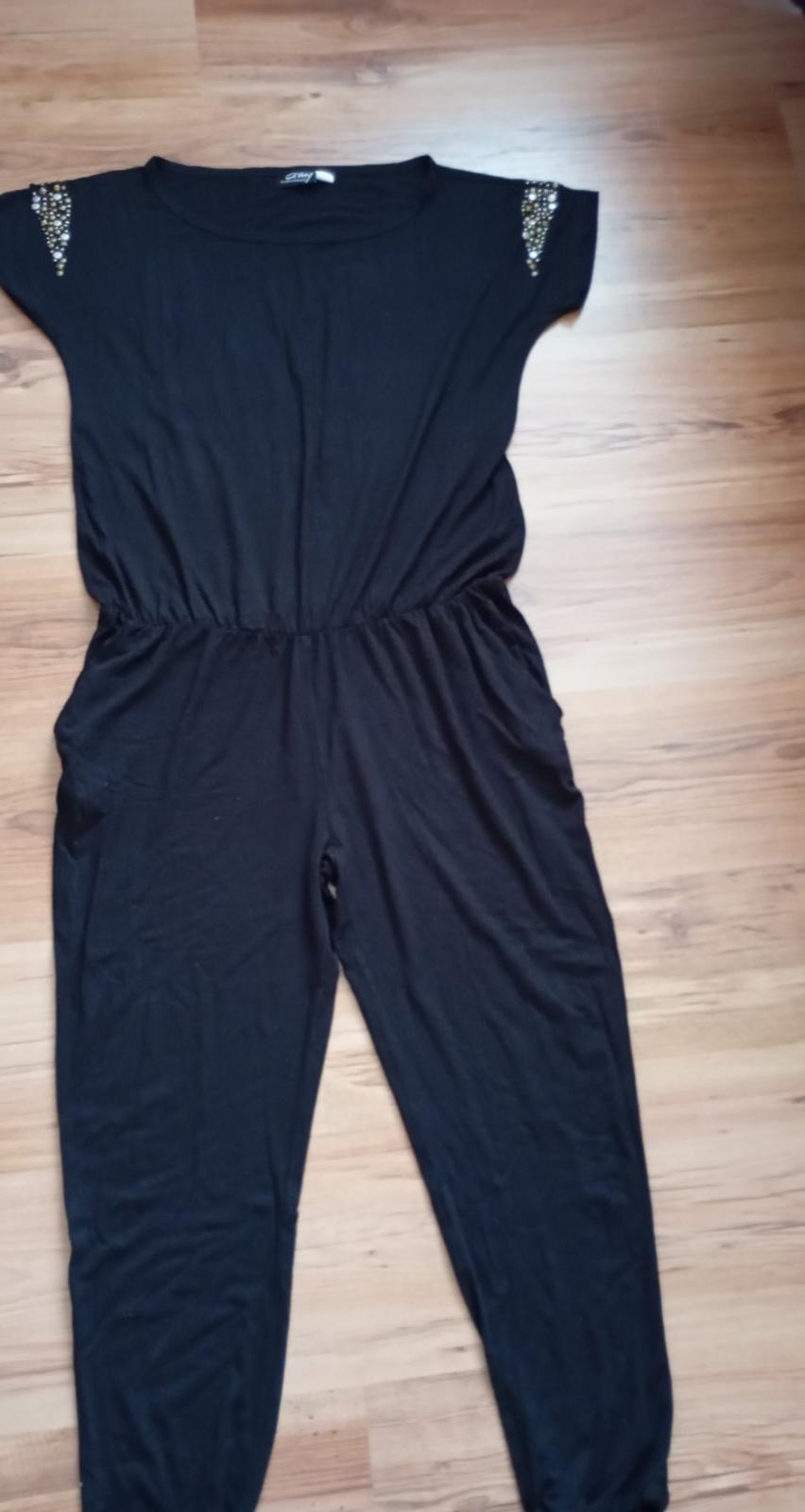 Dámsky overal je čiernej farby, materiál je jemný, nekrčivý, polský výrobok, krasne sedi na postave a opasok zvýrazňuje pas, veľ. 40. ( velkostne sedí )