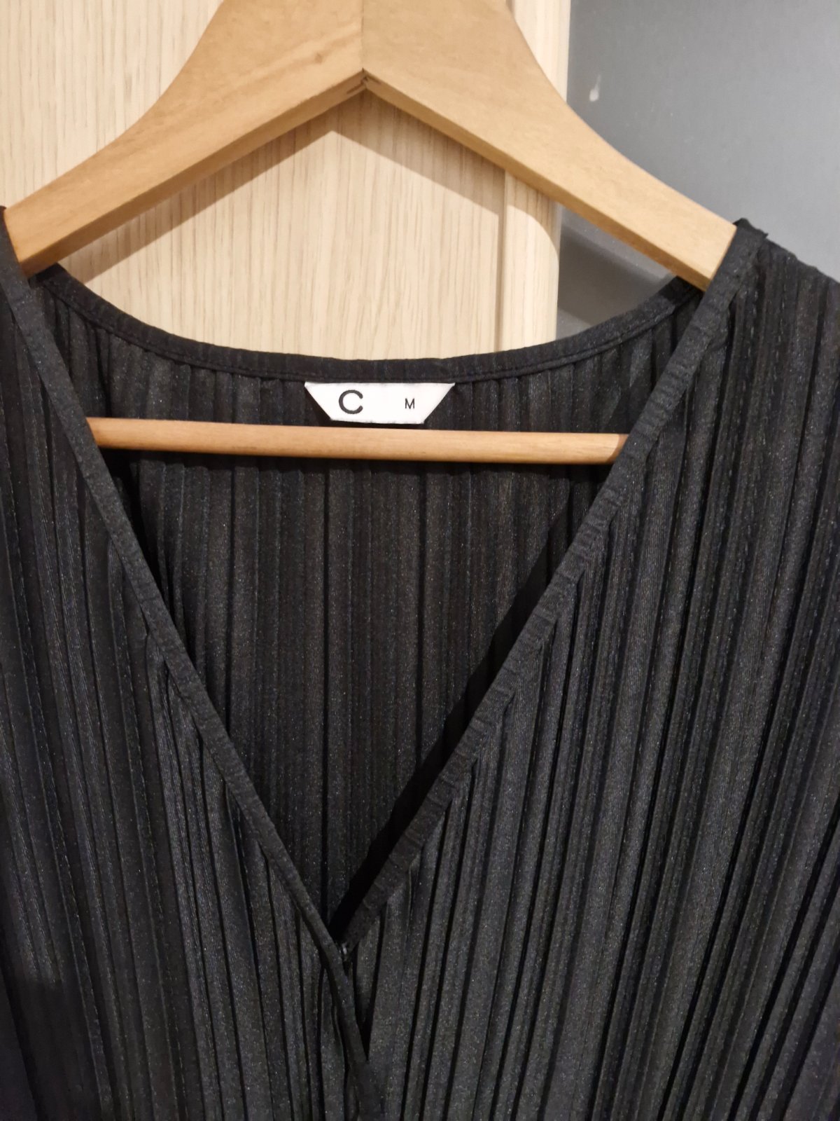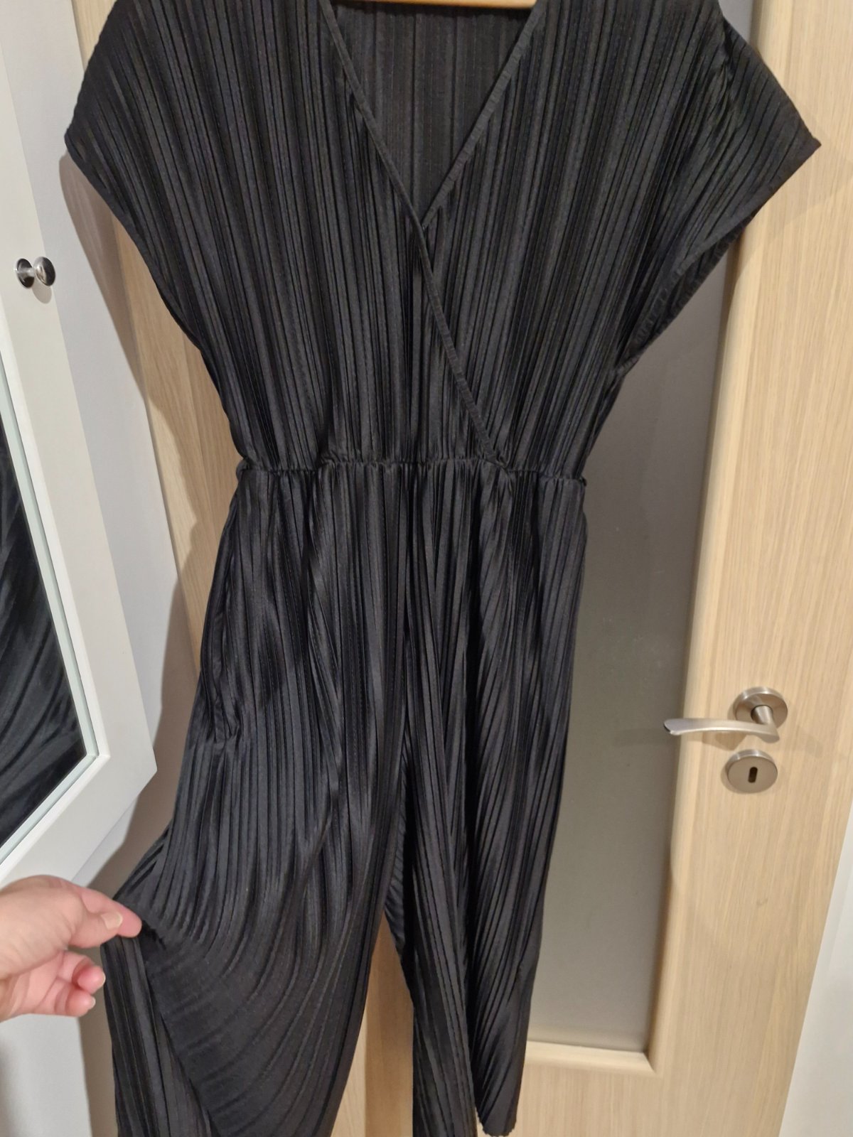 Kvalitny overal na leto,ja som ho mala oblečený na firemný vecierok,širšie nohavice oblečený cca 2x,bez poslodenia,vzadu je viazanie na krku a ukáže časť holeho chrbta presne kríze na postave vyzer...
