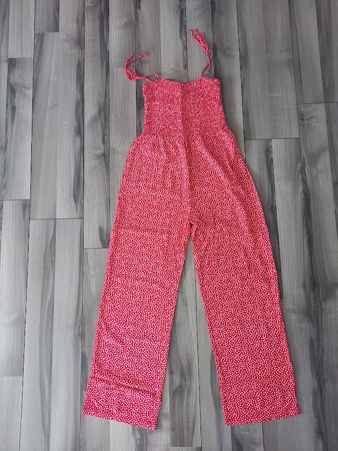 Pekný, štýlový, vzdušný overal ako nový so širokými nohavicami. Bol kupovaný na dovolenku do Chorvátska, potom minimum oblečený jedno leto po 1 dieťati. Dĺžka nohavíc od rozkroku nadol je 71 cm. Celková dĺžka od ramienok je 122 cm. Ramienka regulovateľné. PC cena bola 18,90 € teraz 4 € + poštovné