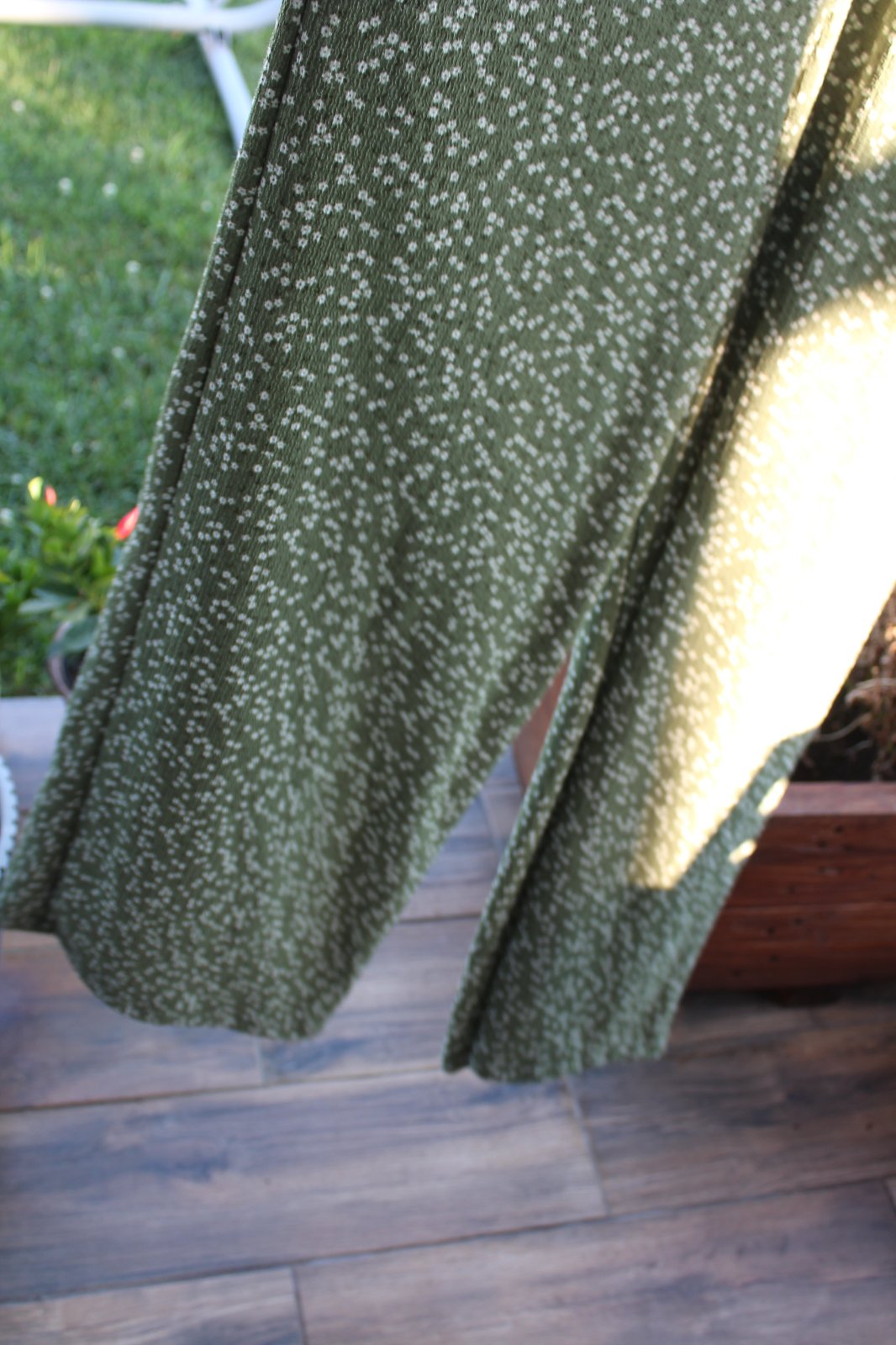 Vo výbornom, raz oblečenom stave. Sú z fantastickej nekrčivej látky. Ja ho bohužiaľ nevyužijem, preto posúvam. V páse je guma, a sedí aj ako dámska veľkosť S/M.