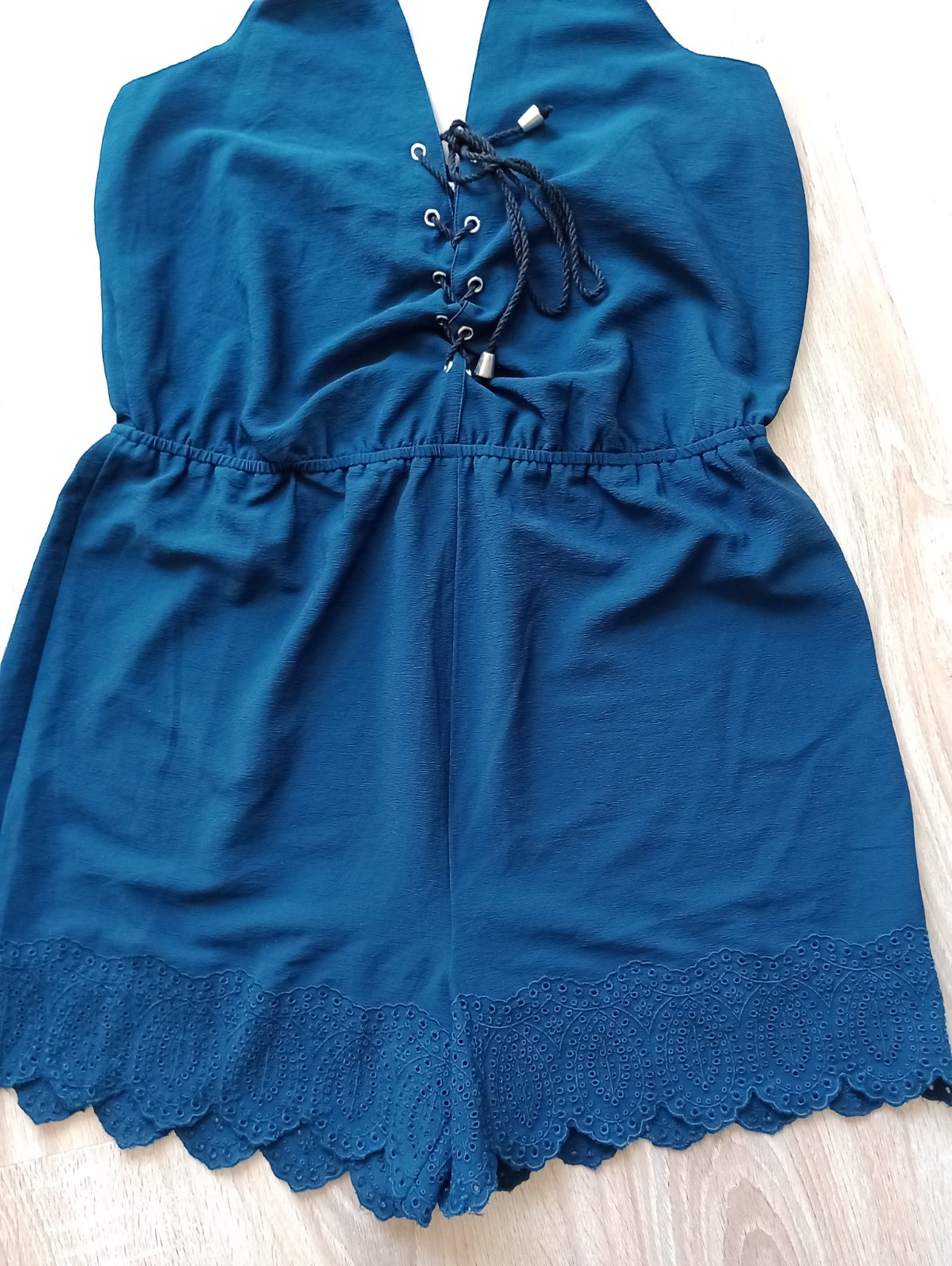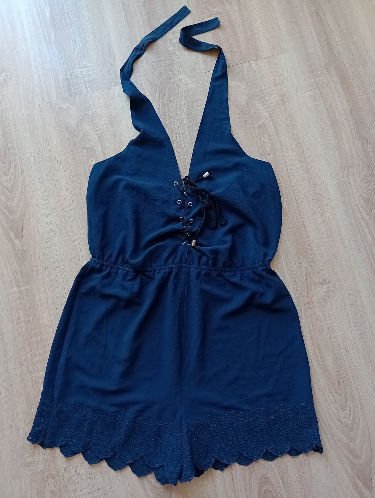 Námornícka modrá farba. Oblečený len na jednej dovolenke. Kuk všetky moje inzeráty, rada s vami veci aj vymením 🙂