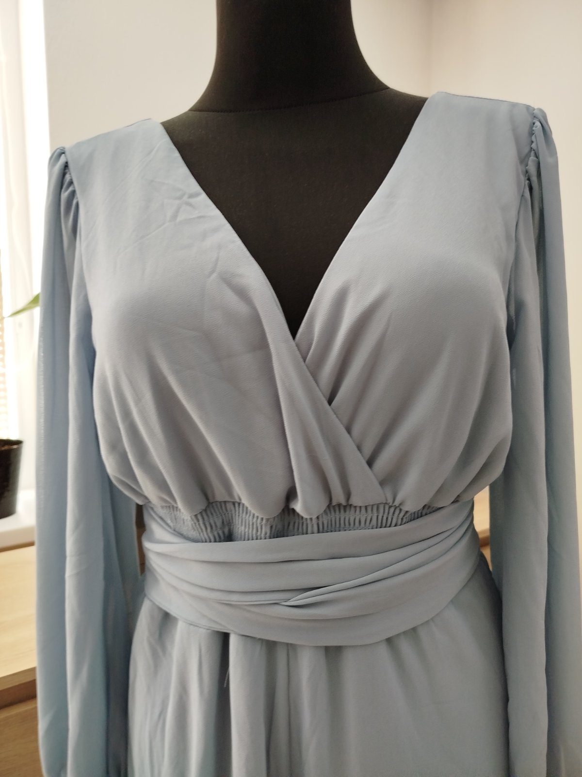 Farba je jemná, svetlomodrá – krásna voľba na svadbu, oslavu alebo inú špeciálnu príležitosť.