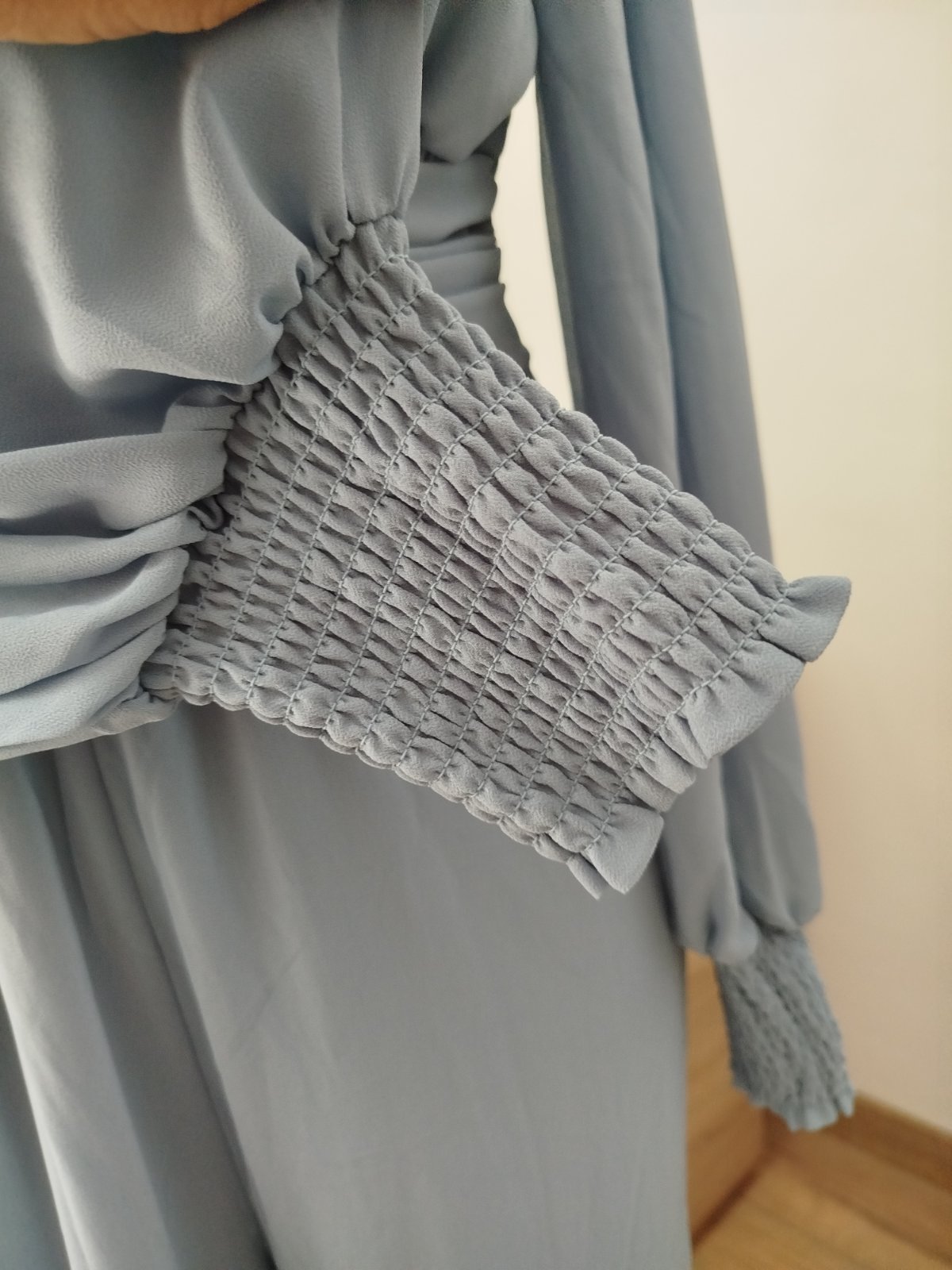 👗 Strih: zavinovací vrch, dlhé rukávy s naberanými manžetami, viazanie v páse, dlhé rovné nohavice