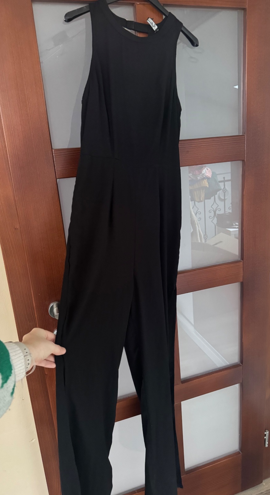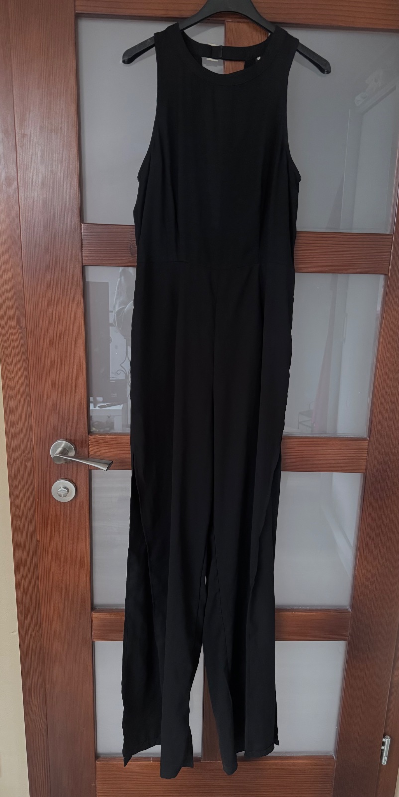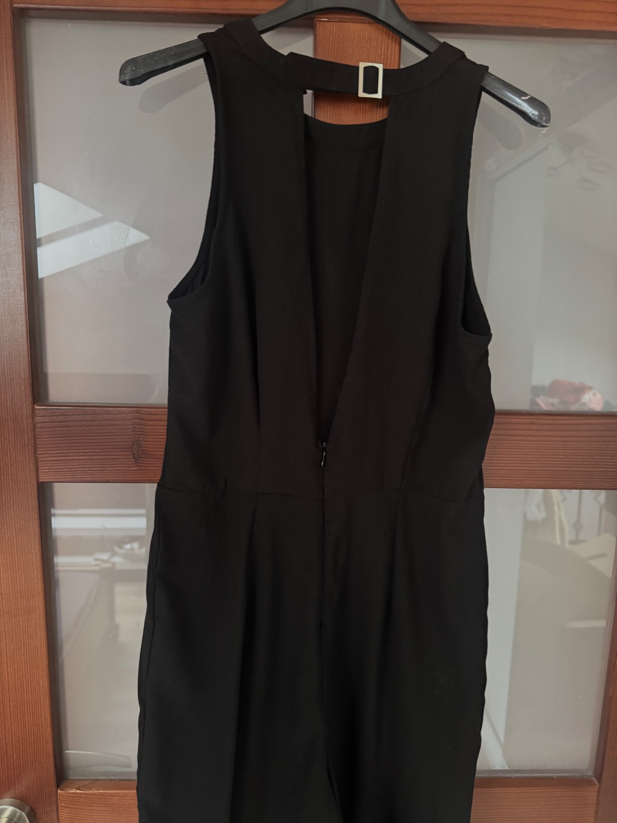 Predám čierny overal vzadu na zips s odhaleným chrbátom. Na nohaviciach rozparky.