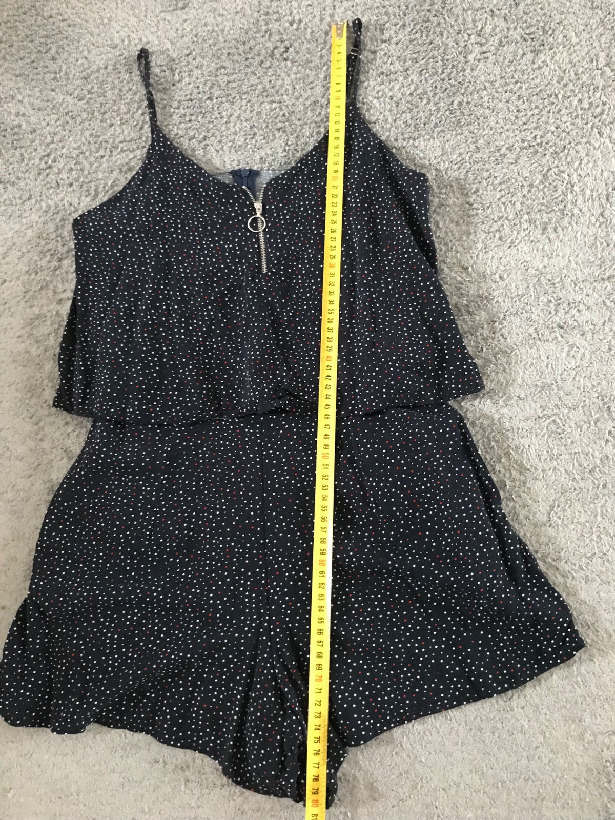 pekny letný overal, ľahučky a vzdušný materiál. Vpredu krátky zipšik na regulovanie výstrihu podľa predstáv :)