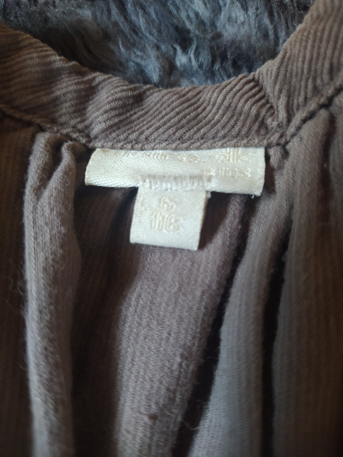 Pekny noseny stav, zapinanie na cvoky Uvedena velkost 122 ale je menší, tak 110/116 sedí