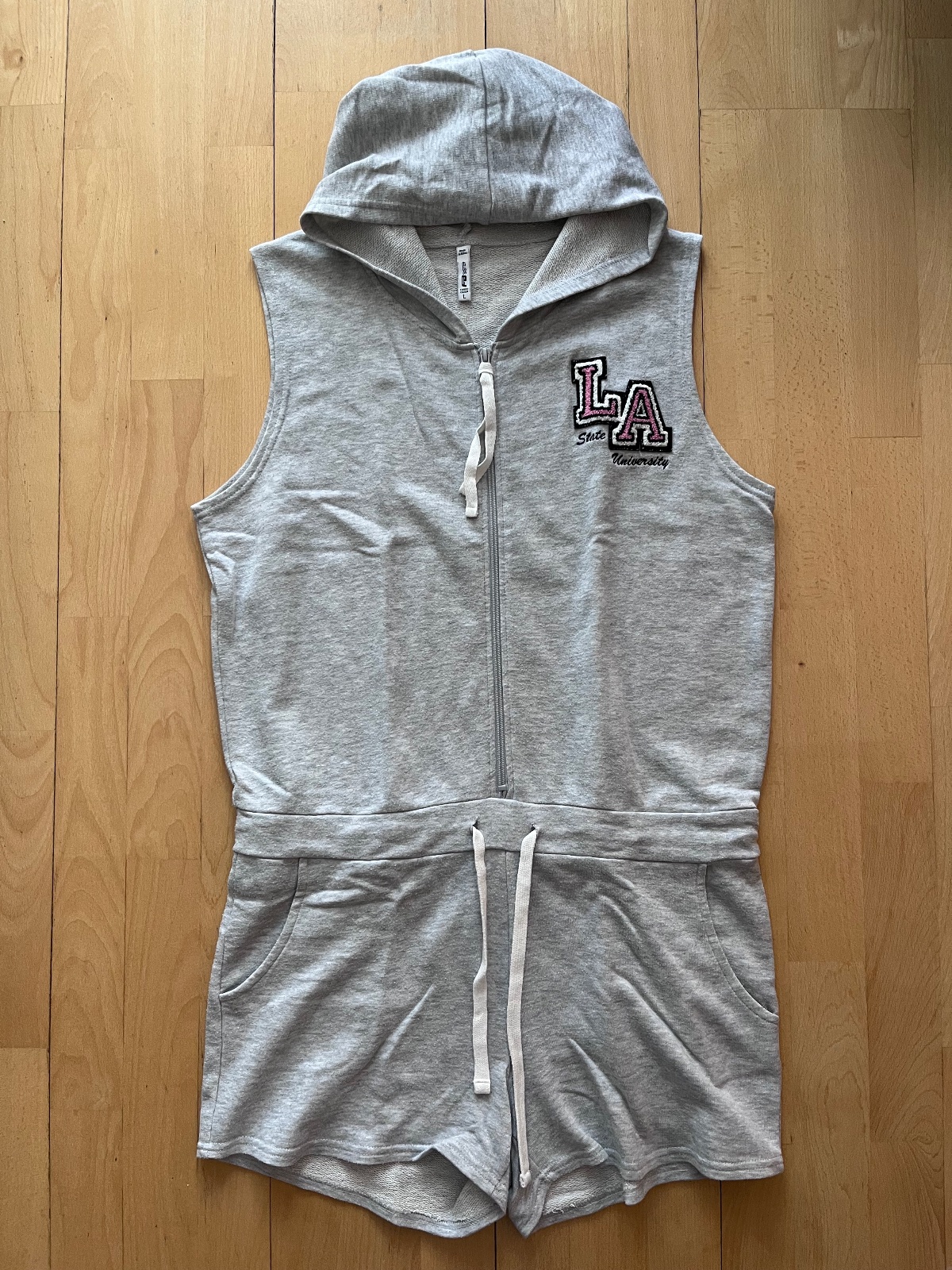Predam bavlneny overal, sv. sivy, znacka Fishbone, 2 bocne vrecka, zapínanie vpredu na zips, velkost L, s kapucnou. Zachovaly stav, bez flakov alebo dierok. V pase sťahovanie na šnúrku. Zadna dlzka od krku po 83 cm, sirka v pase bez stiahnutia 49 cm, bez rukavov. BA - Ruzinov.