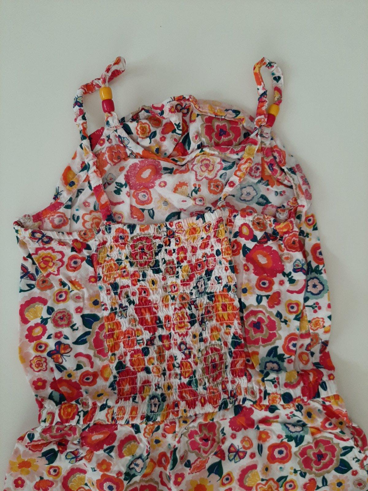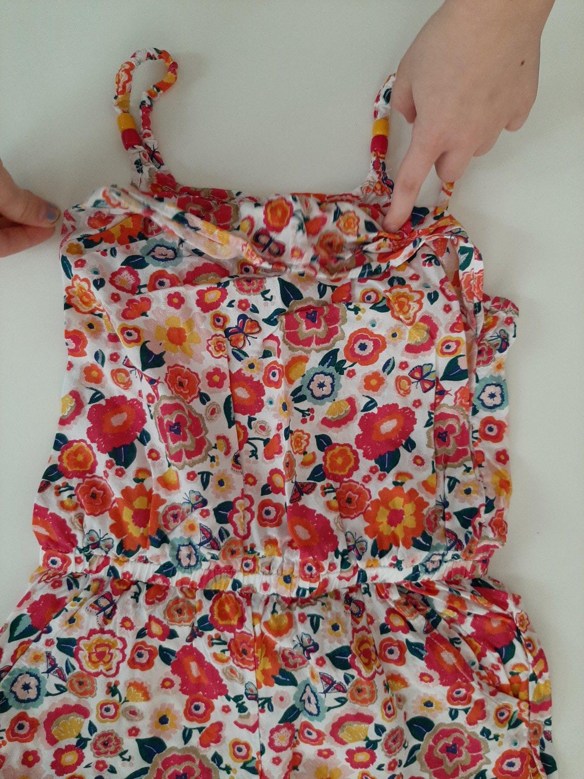 Nádherný letný overal na tenučké ramienka, vrchná časť je gumičková riasaná, naspodu tiež do gumičky, veľ. 122/128
