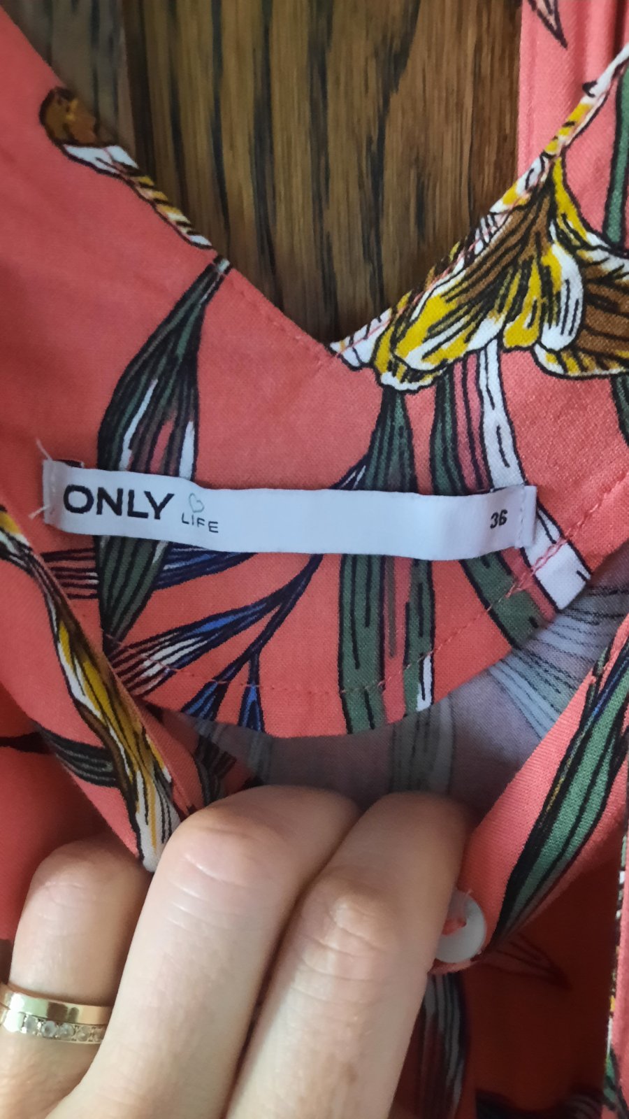 Krásny letný overal zn. Only. Vzadu sú 5 gombíkov. V páse na gumu. Š. spod pazuchy 44, pás od 36-44 po natiahnutí. D 77 od pleca