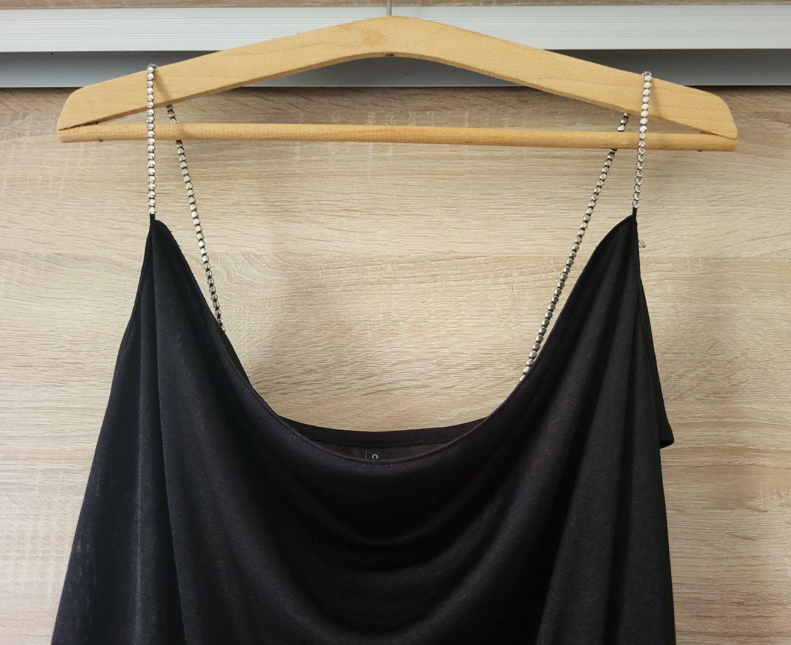 super stav, padavý, nádherný, veľmi pohodlný, celková dĺžka 82cm, dĺžka od pása dole 35cm, pás 35x2 až 55x2, boky 56x2, šírka pod pazuchami 40x2 až 59x2, veľmi poddajný voľný strih, poštovné doporučene 3€, obyčajne sa nedá poslať