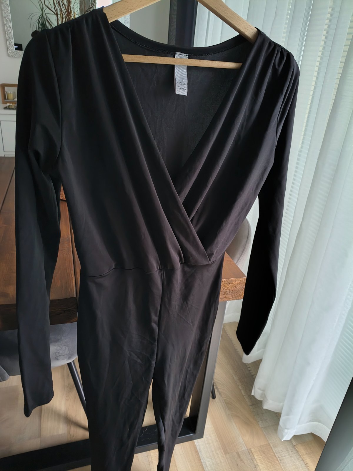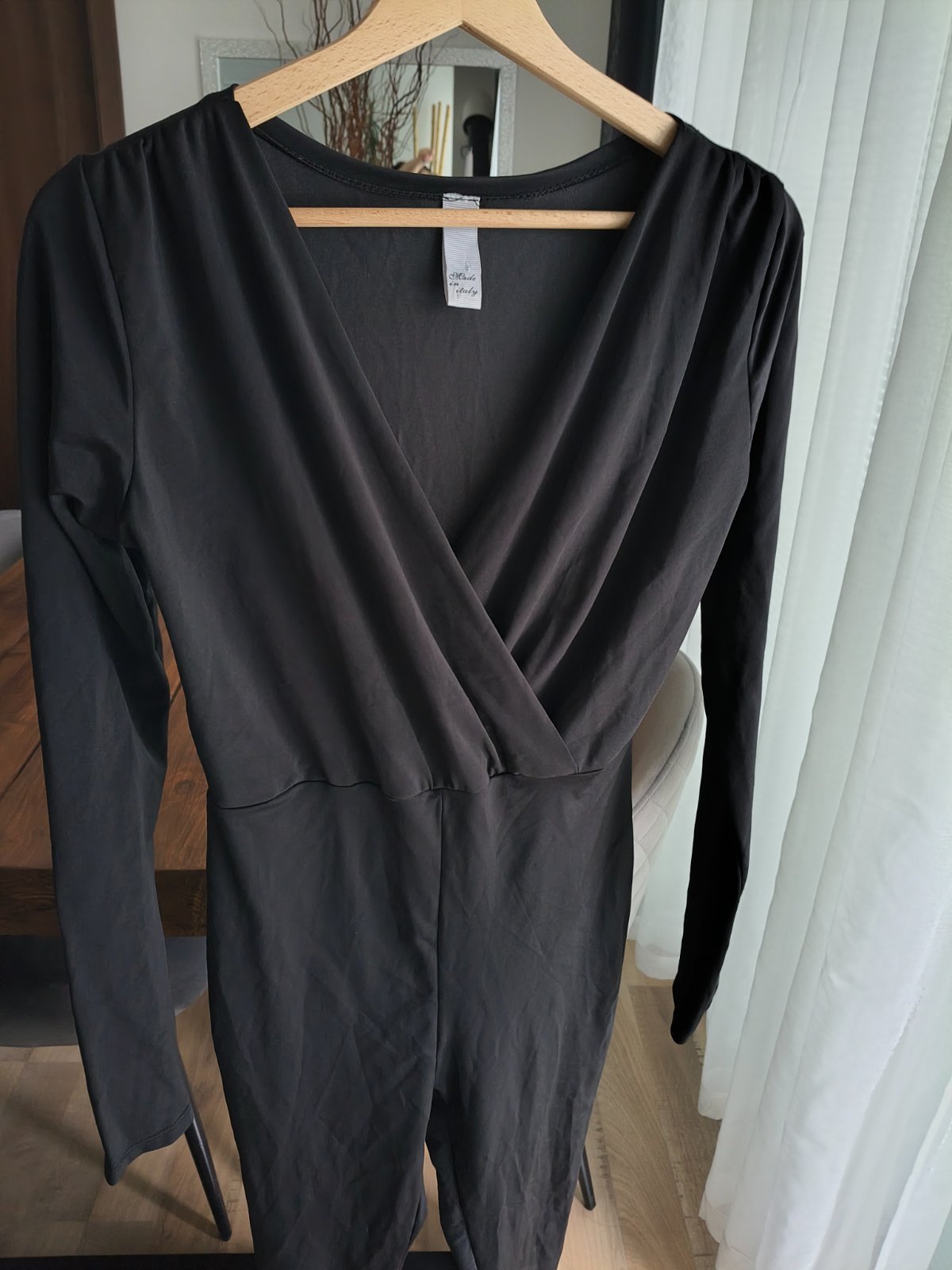Predám krásny čierny elastický hladký overal s vysokým pásom, s krásnym V prekladaným výstrihom, sedí na veľkosť M-L dosť elastický, takže sa prispôsobí postave, úzky slim strih,nepriesvitá,ako nový bez známok nosenia 🤗👍 Made in Italy