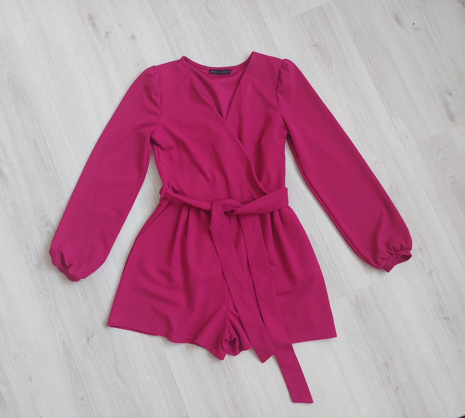 Predám krátky fushiový/sýto-ružový elegantný overal s dlhými rukávmi značky Mohito.